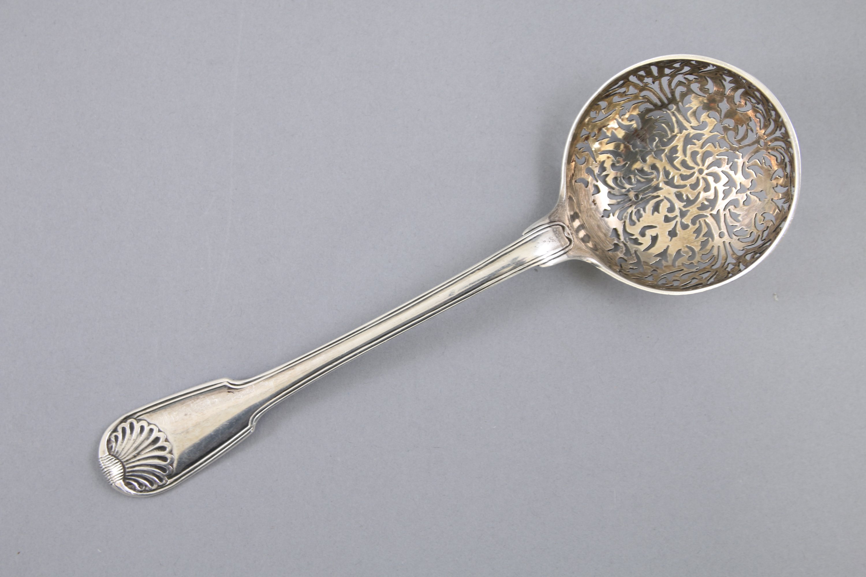 Modèle filet coquille. Le cuilleron à décor ajouré de végétaux stylisés.