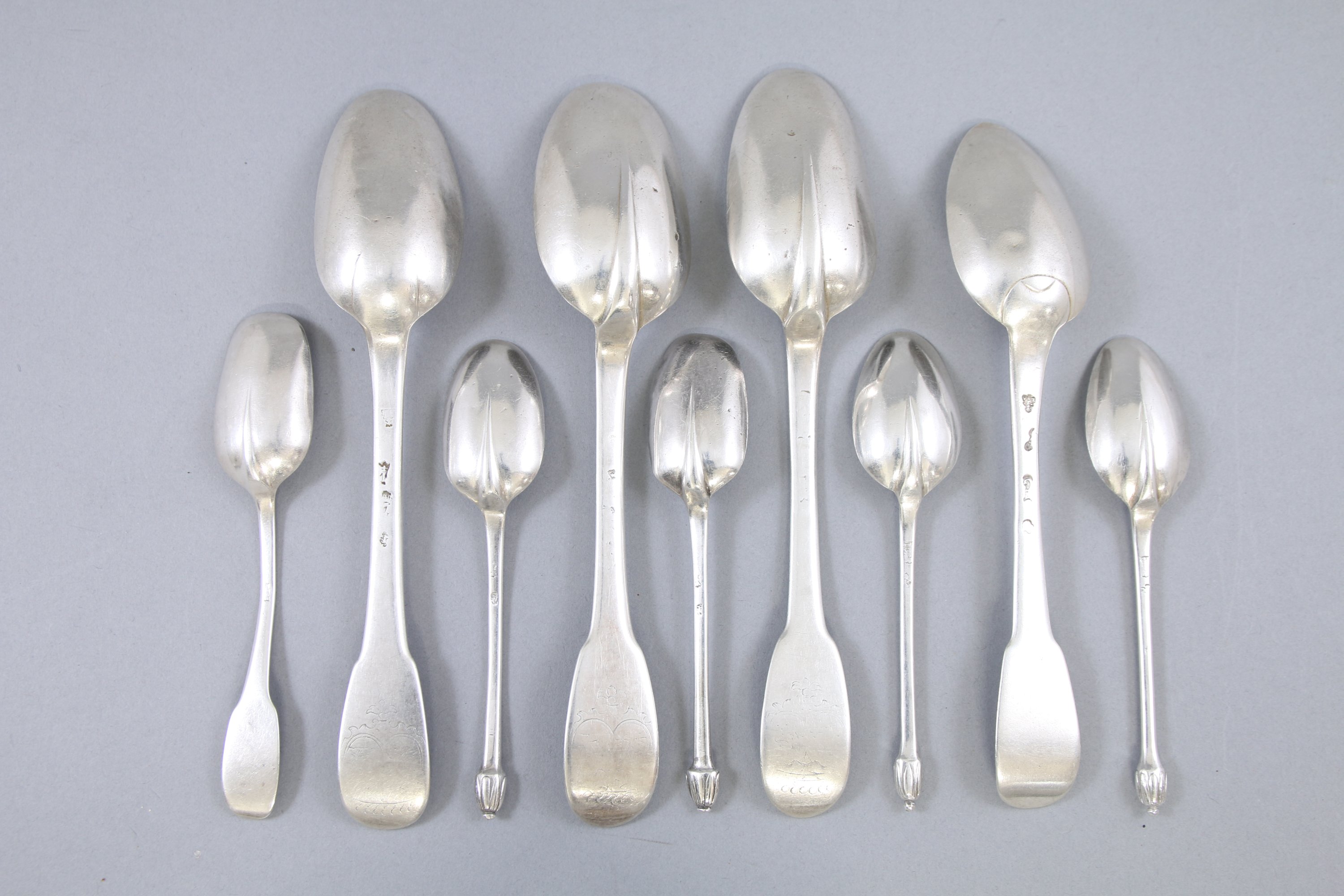 Réunion de neuf cuillers en argent comprenant: