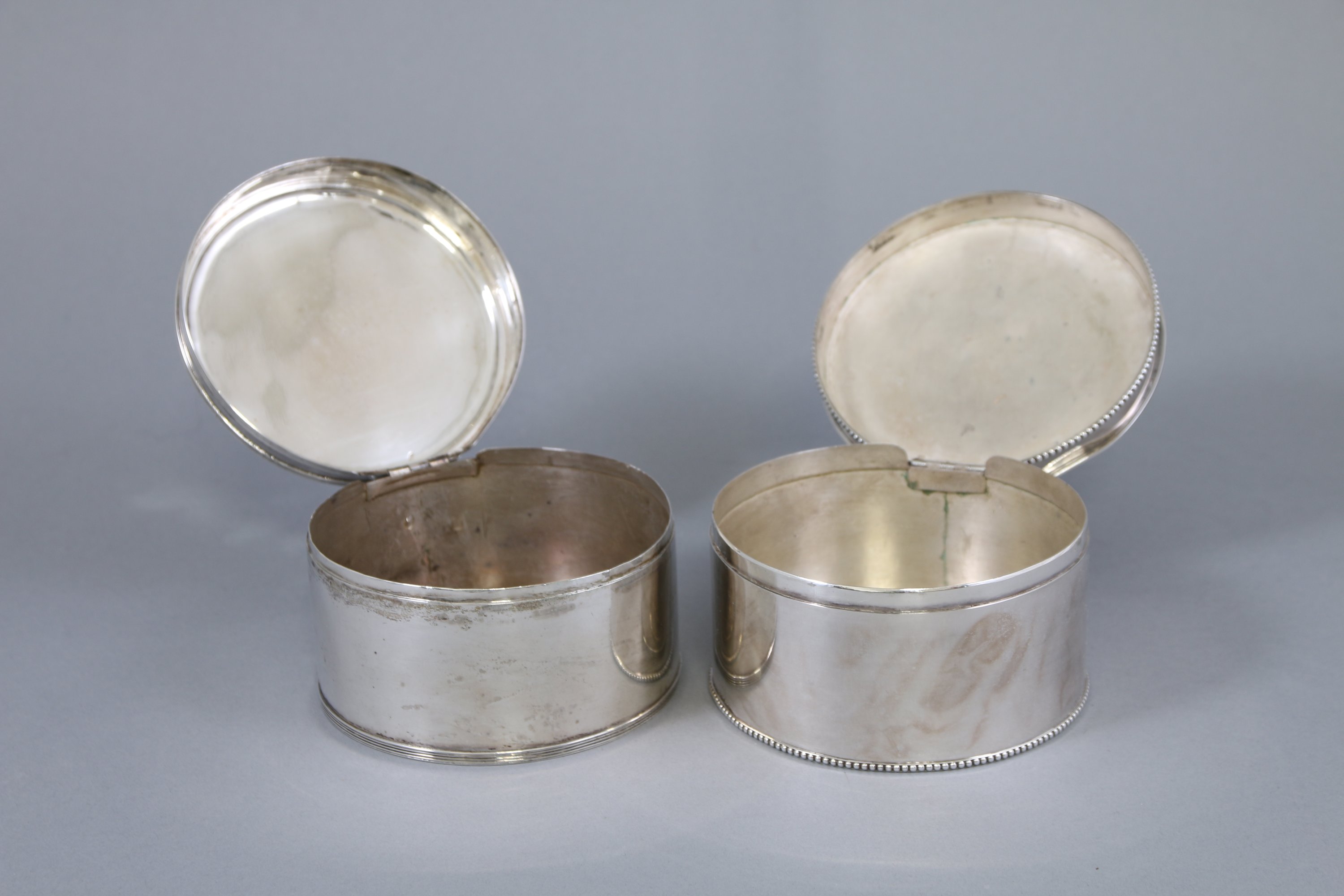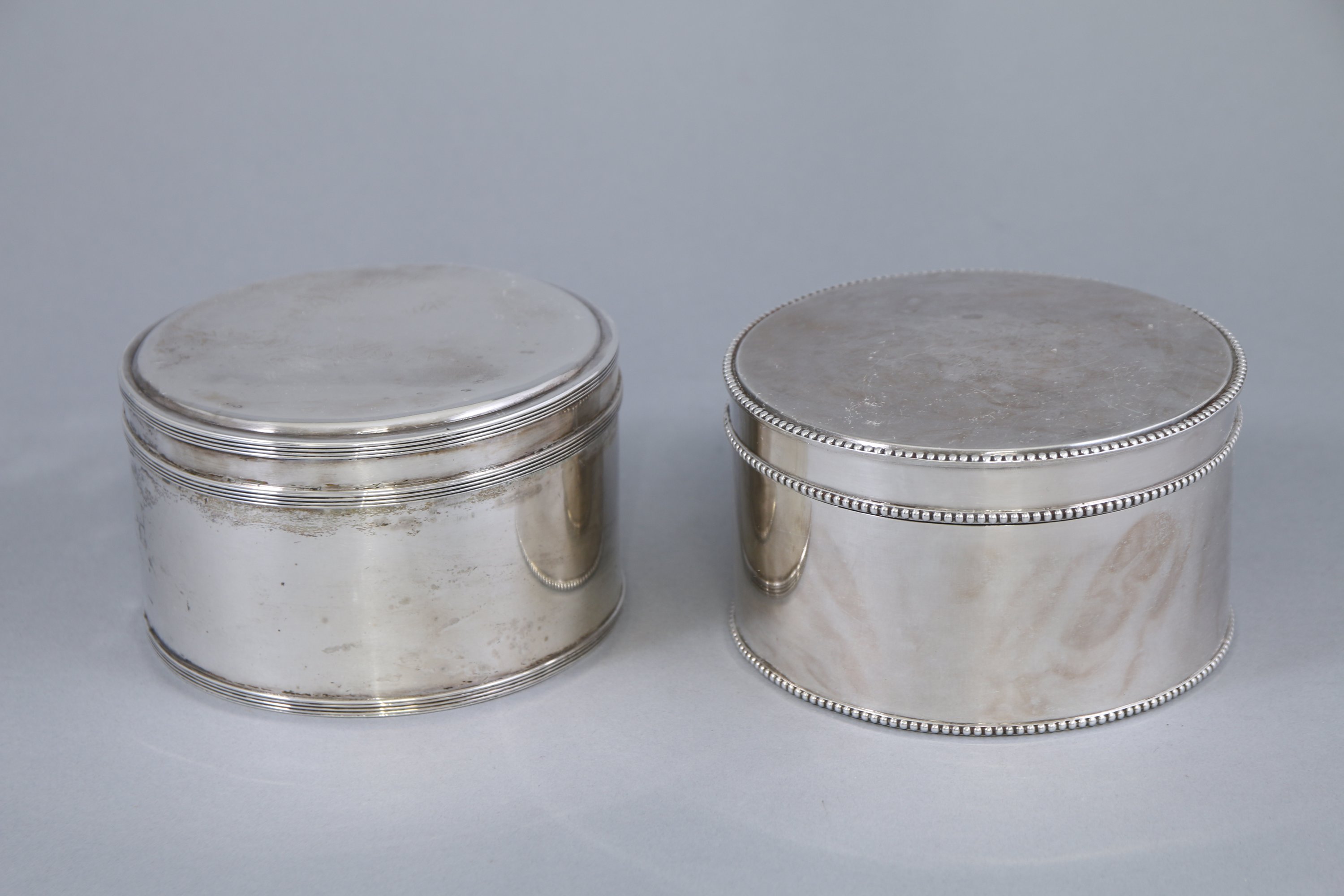 La première à décor de rangs de perles, la seconde moulurée. Les couvercles s'ouvrant chacun par une charnière.