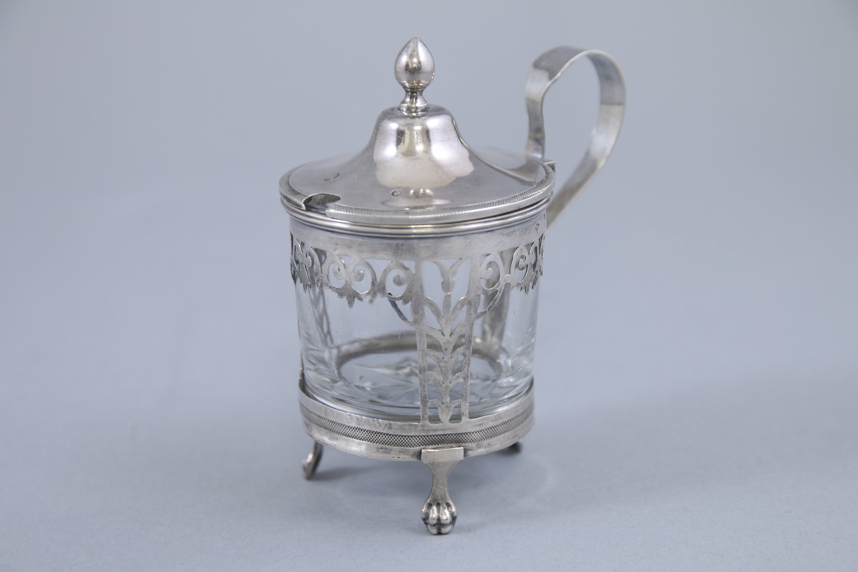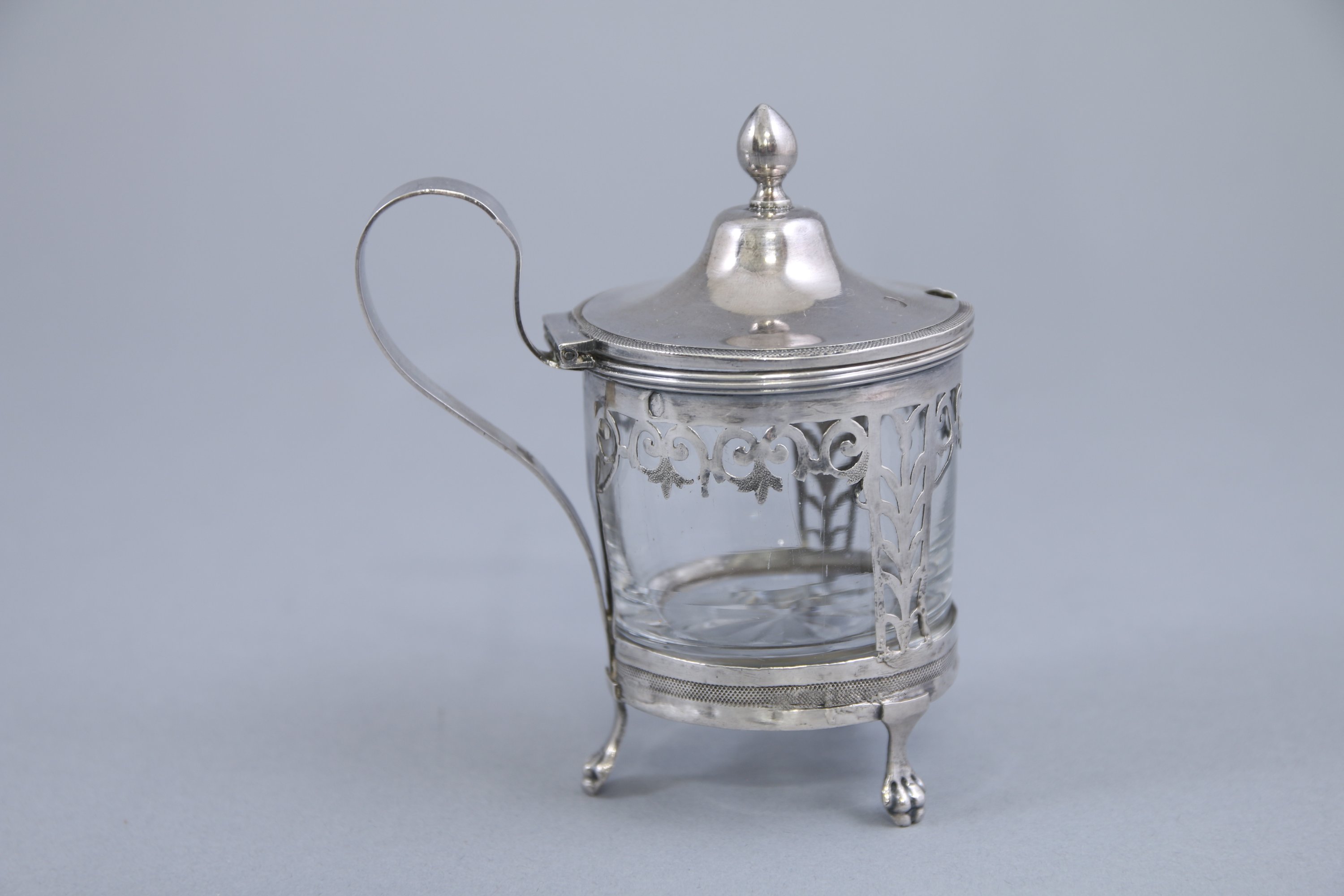 Il repose sur trois pieds à grifes de lion, fretel en pomme de pin et anse lisse.