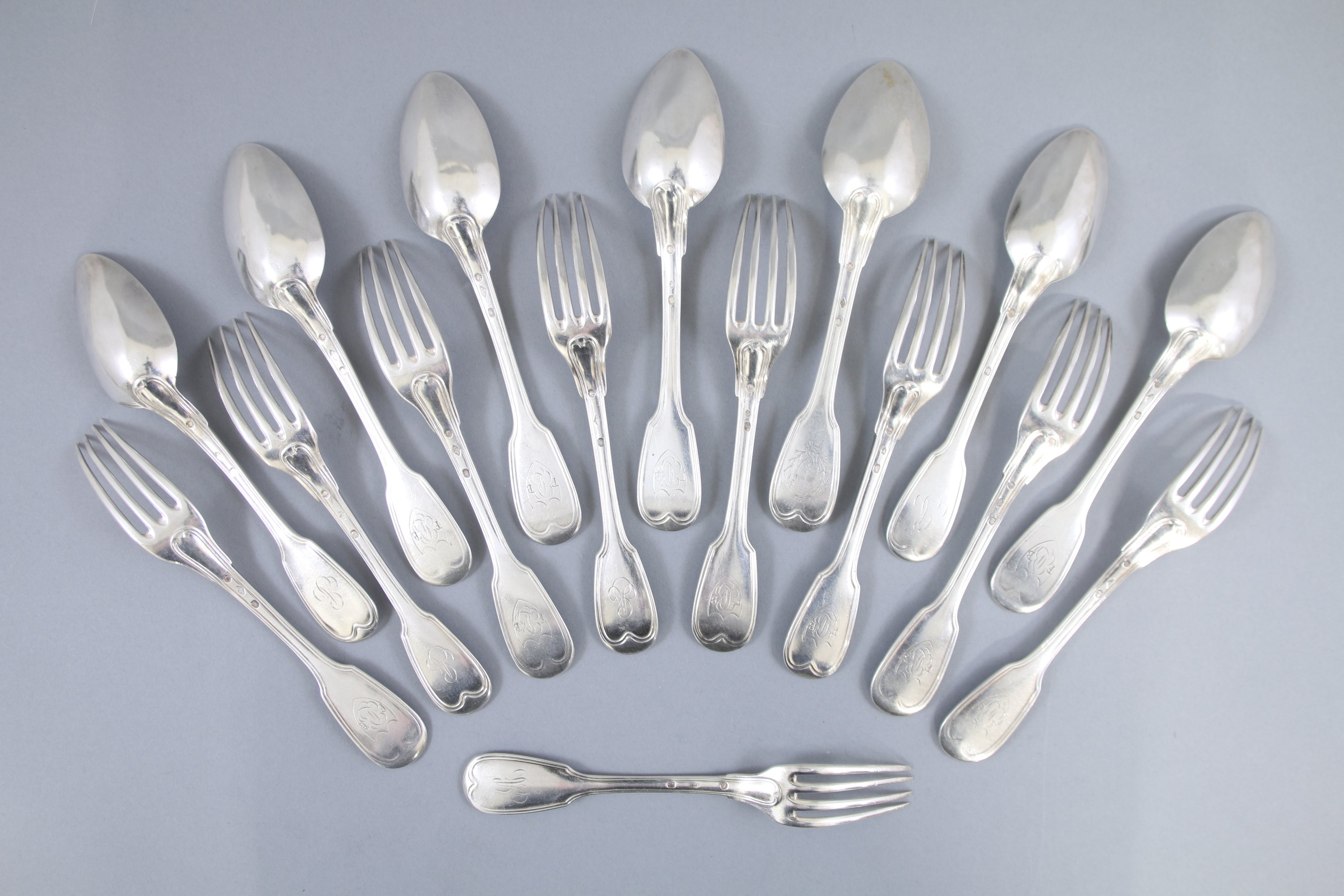 Modèle filet, monogrammées "FB", certains dans des écussons.