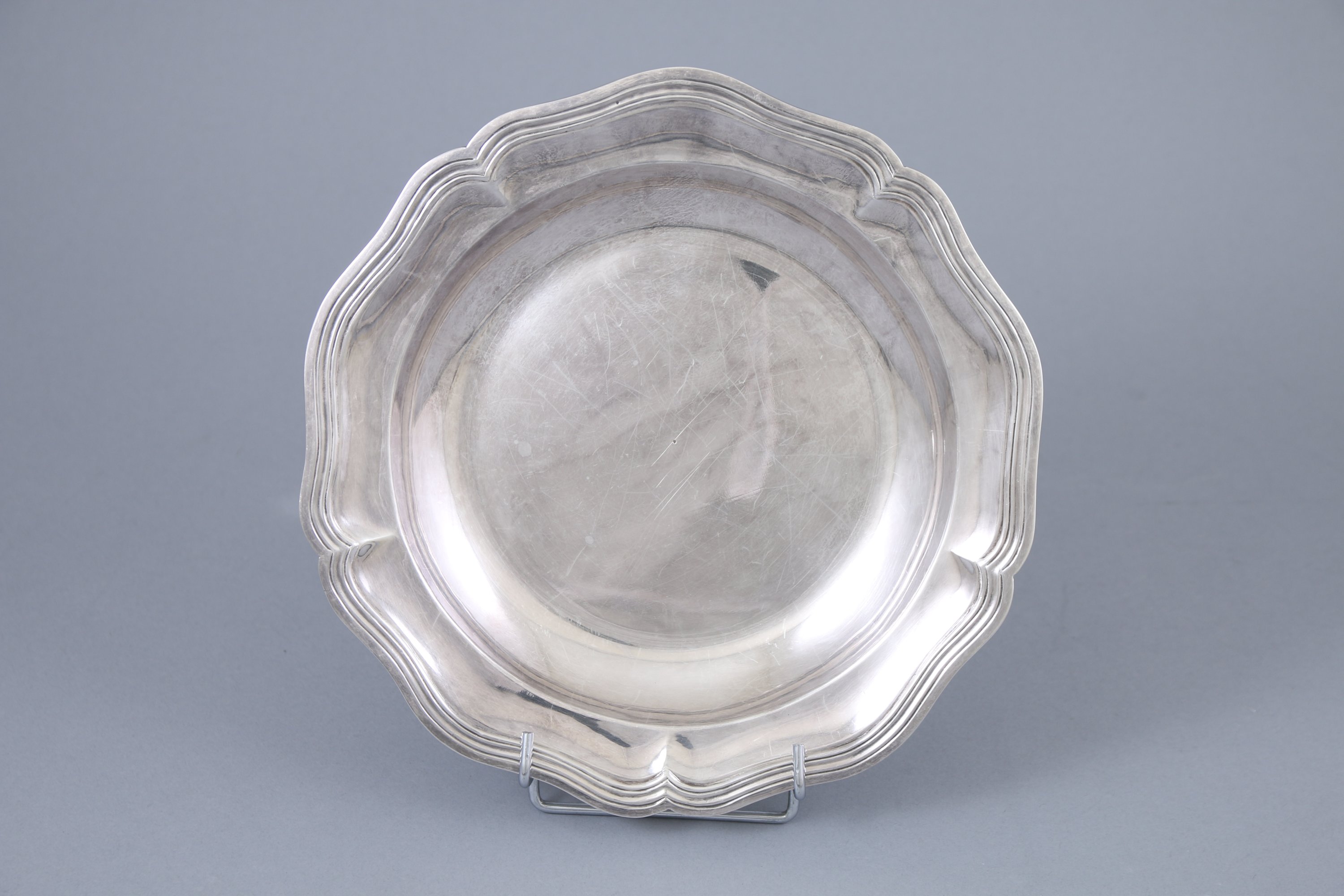 Joint: Plat en argent à batte-contour. Travail étranger. Diam. 24 cm. Poids: 550 g.