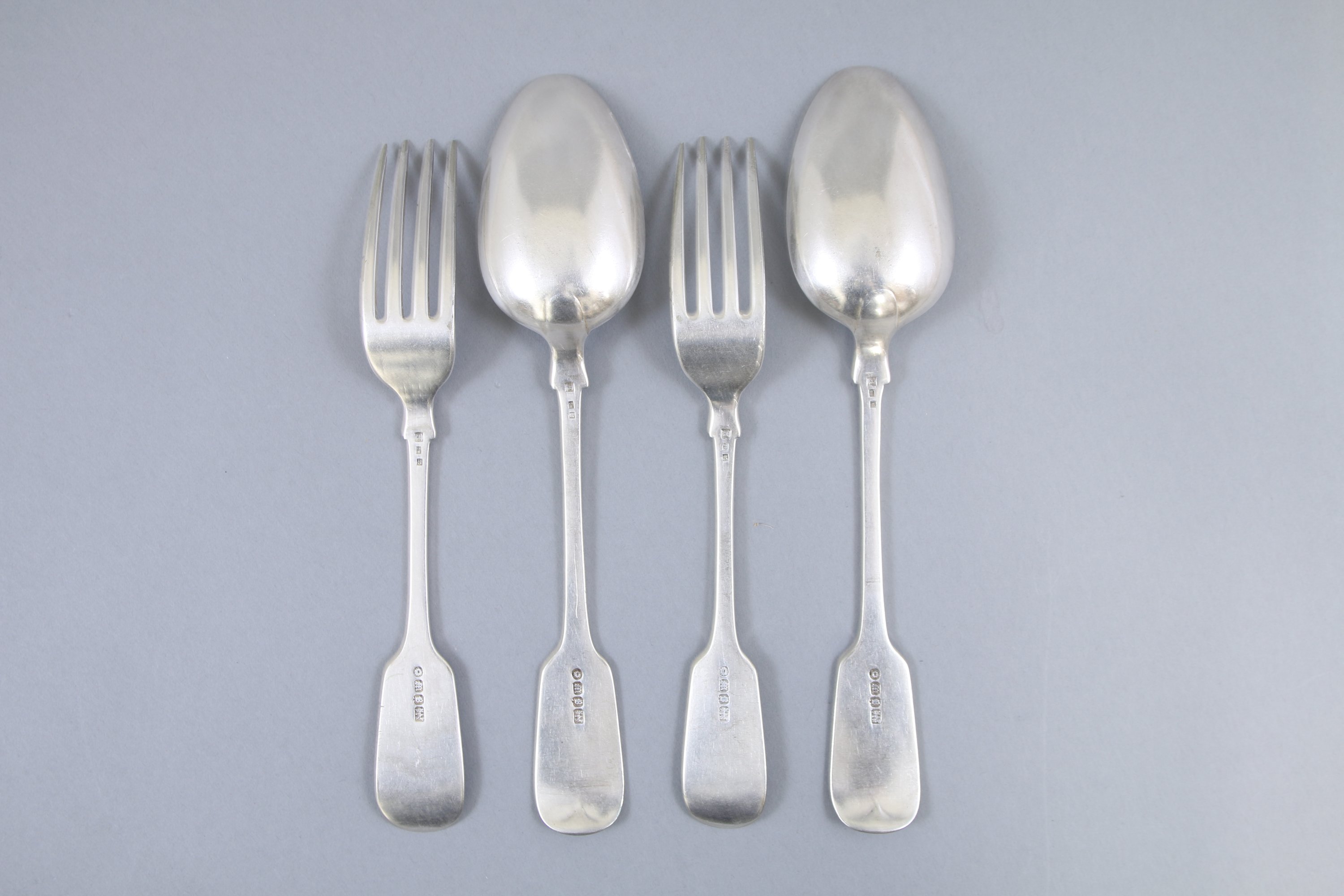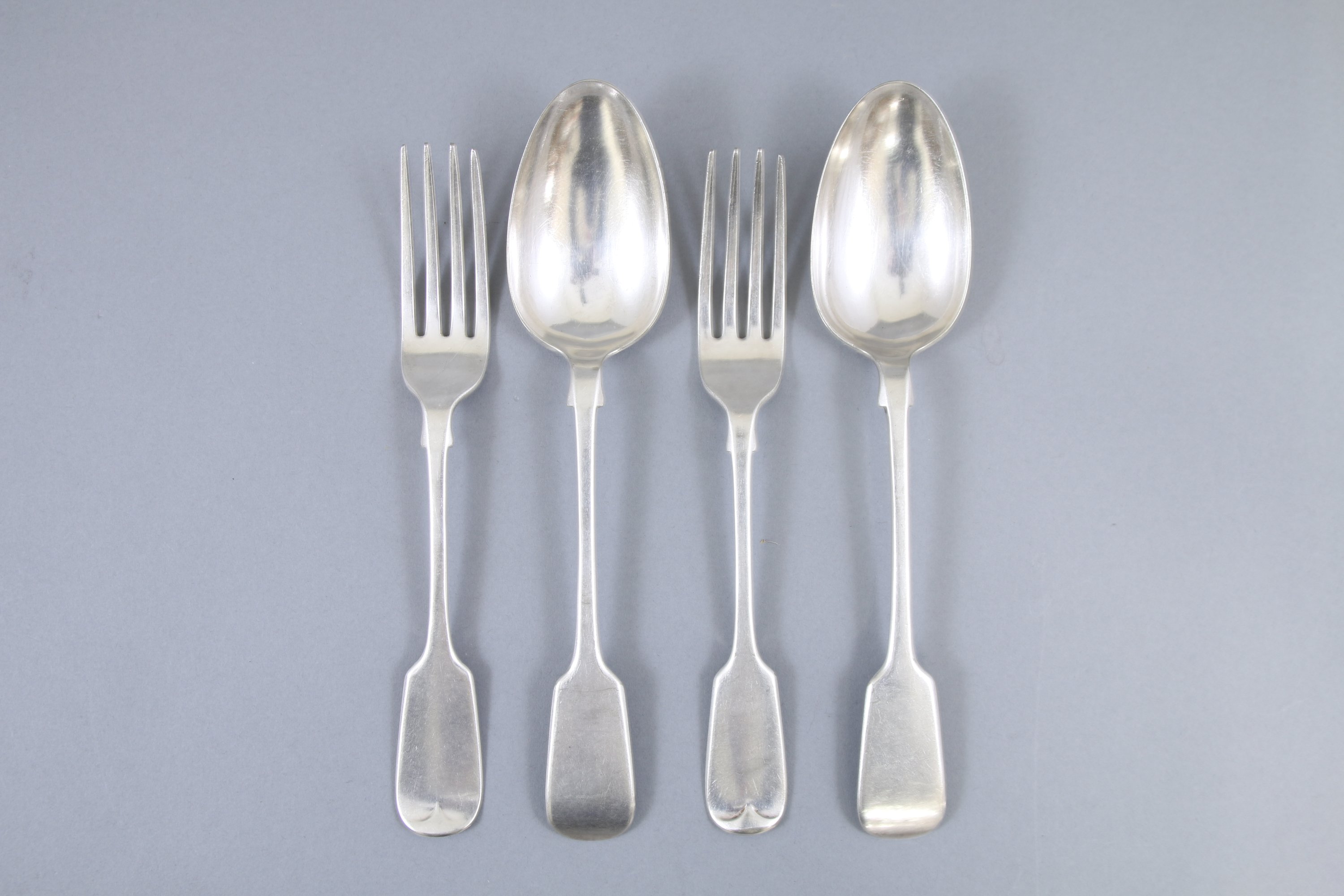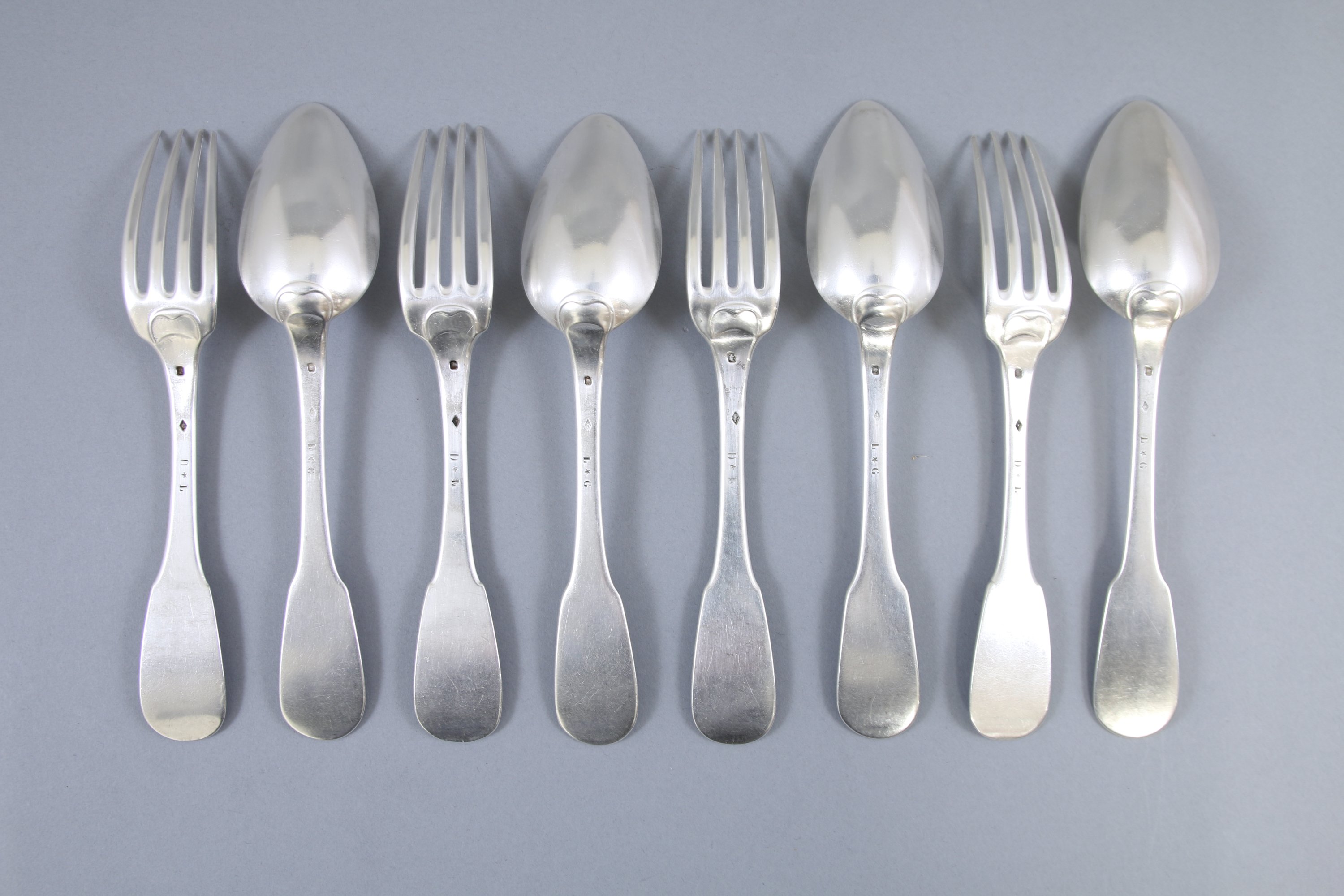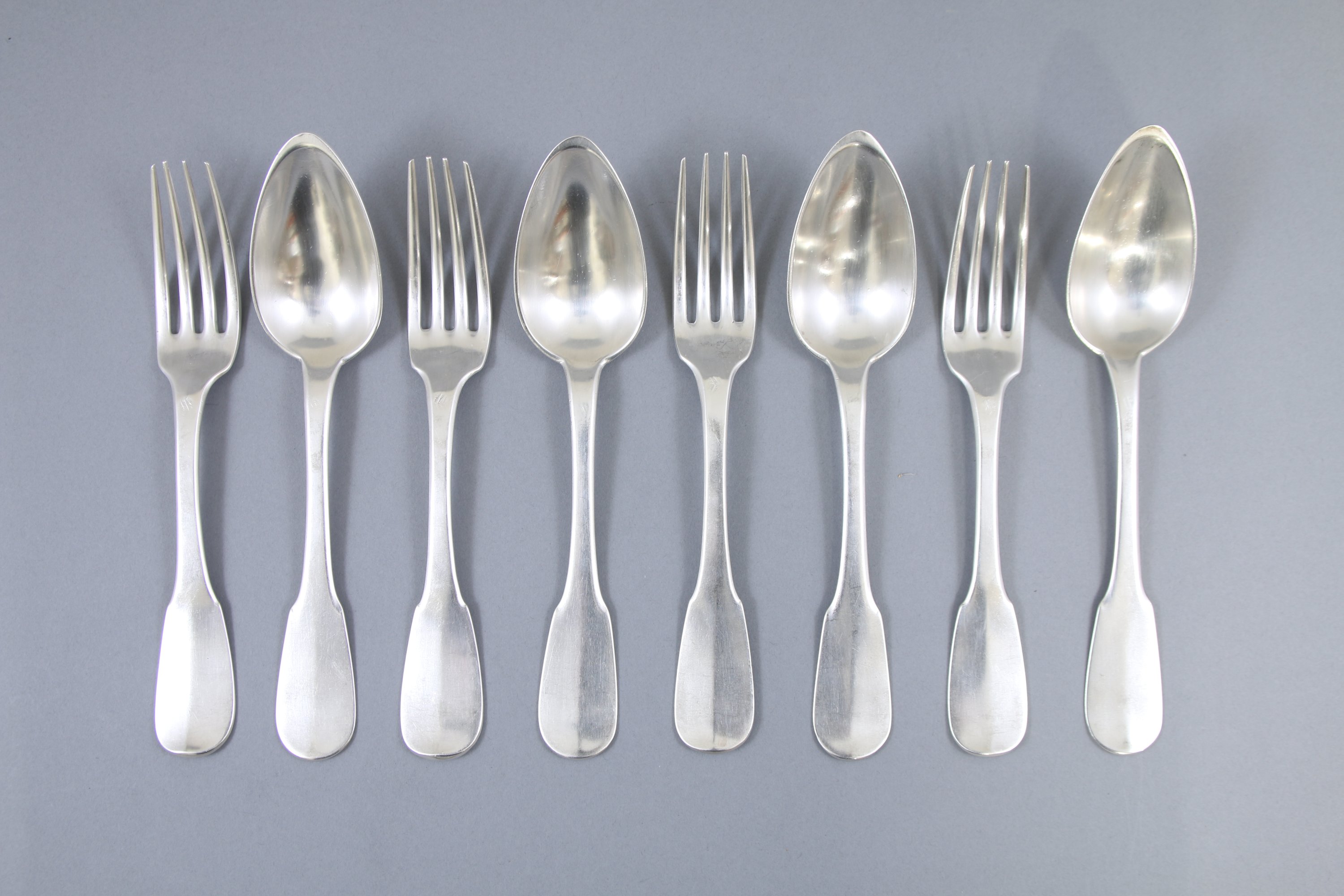 Modèle uniplat. Les cuillers monogrammées "LC" et les fouchettes monogrammées "DL".