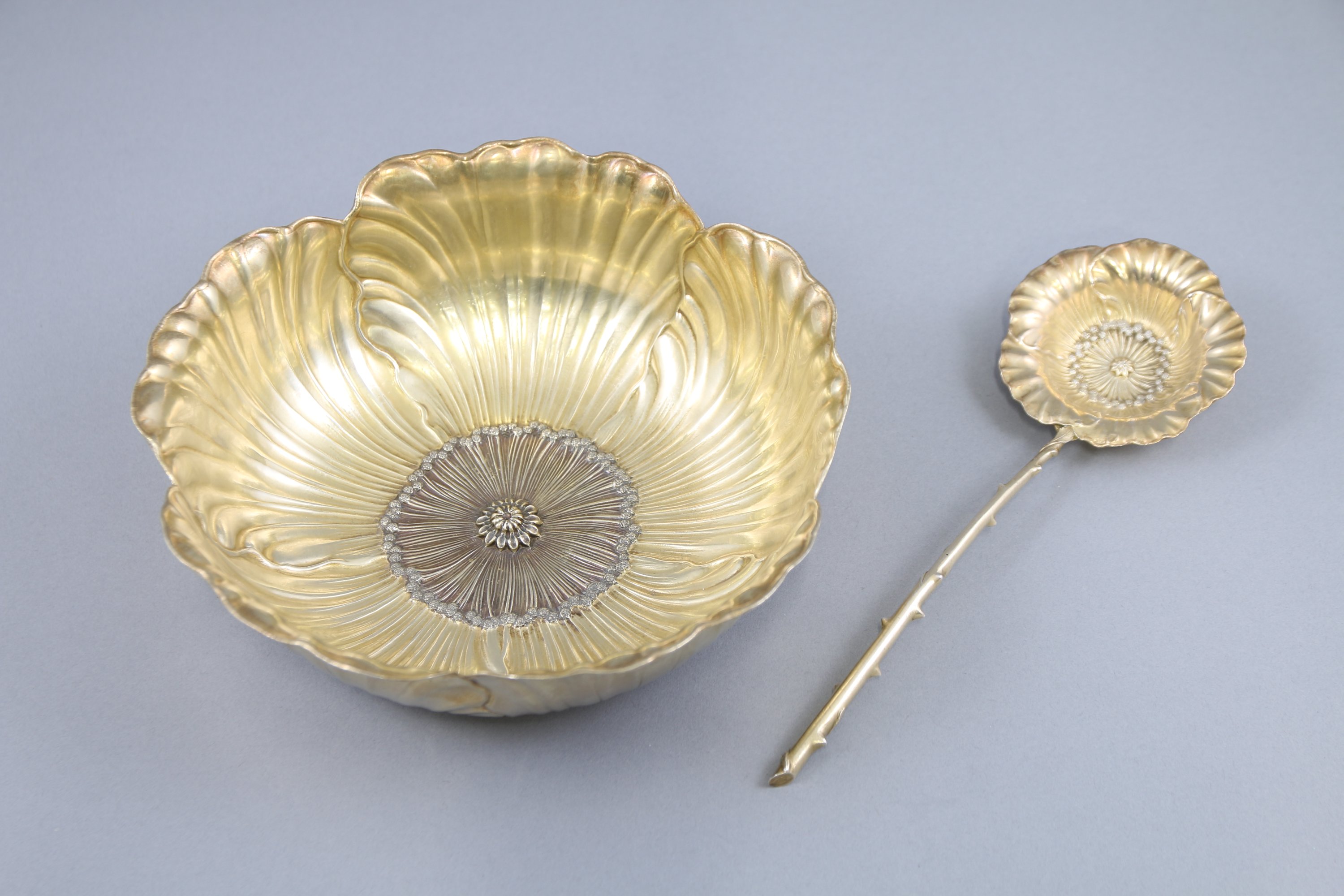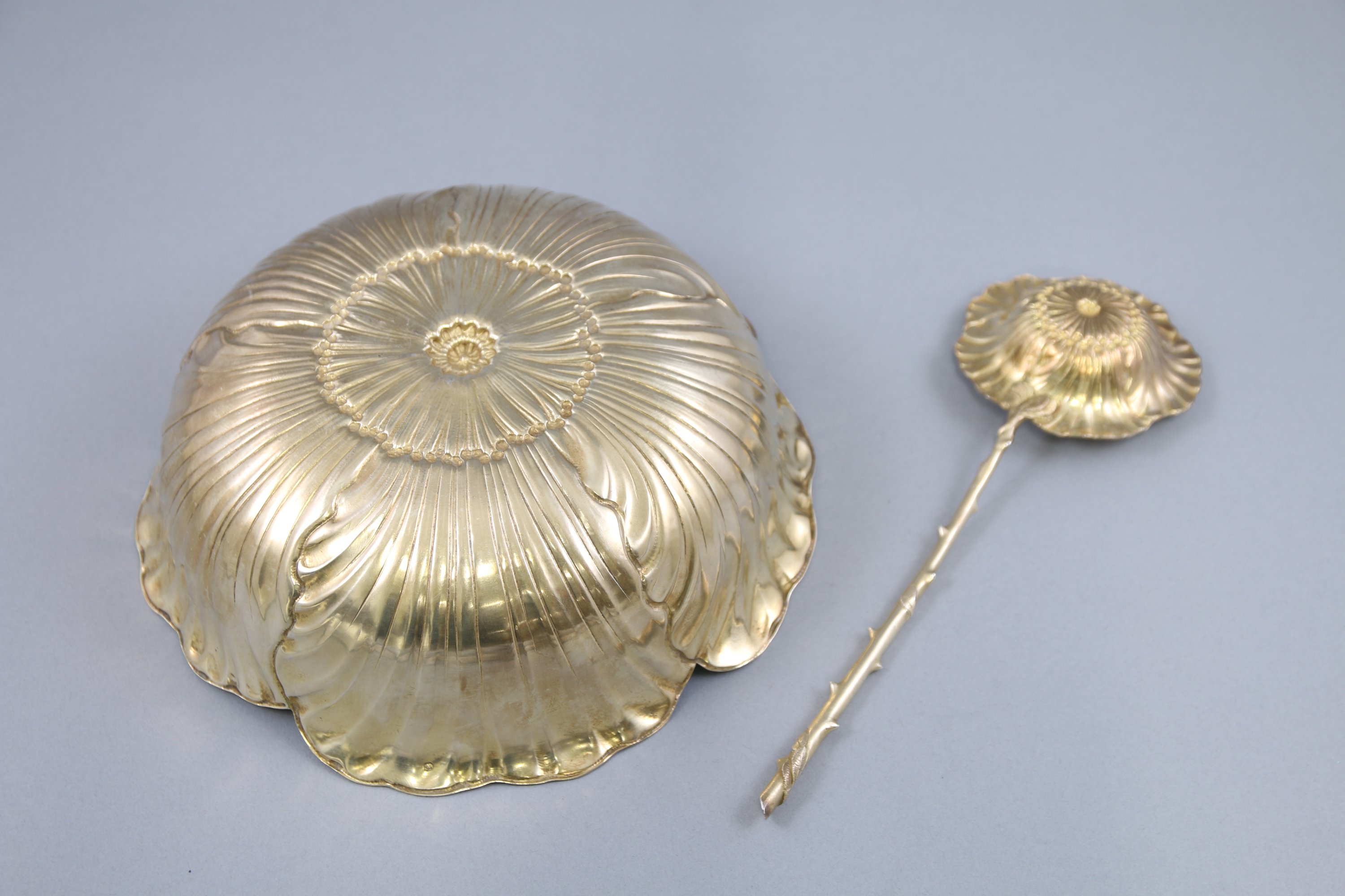 Coupe: Haut. 6,5 Diam. 21 cm. Cuiller: Long. 23 cm. Poids: 412 g.
