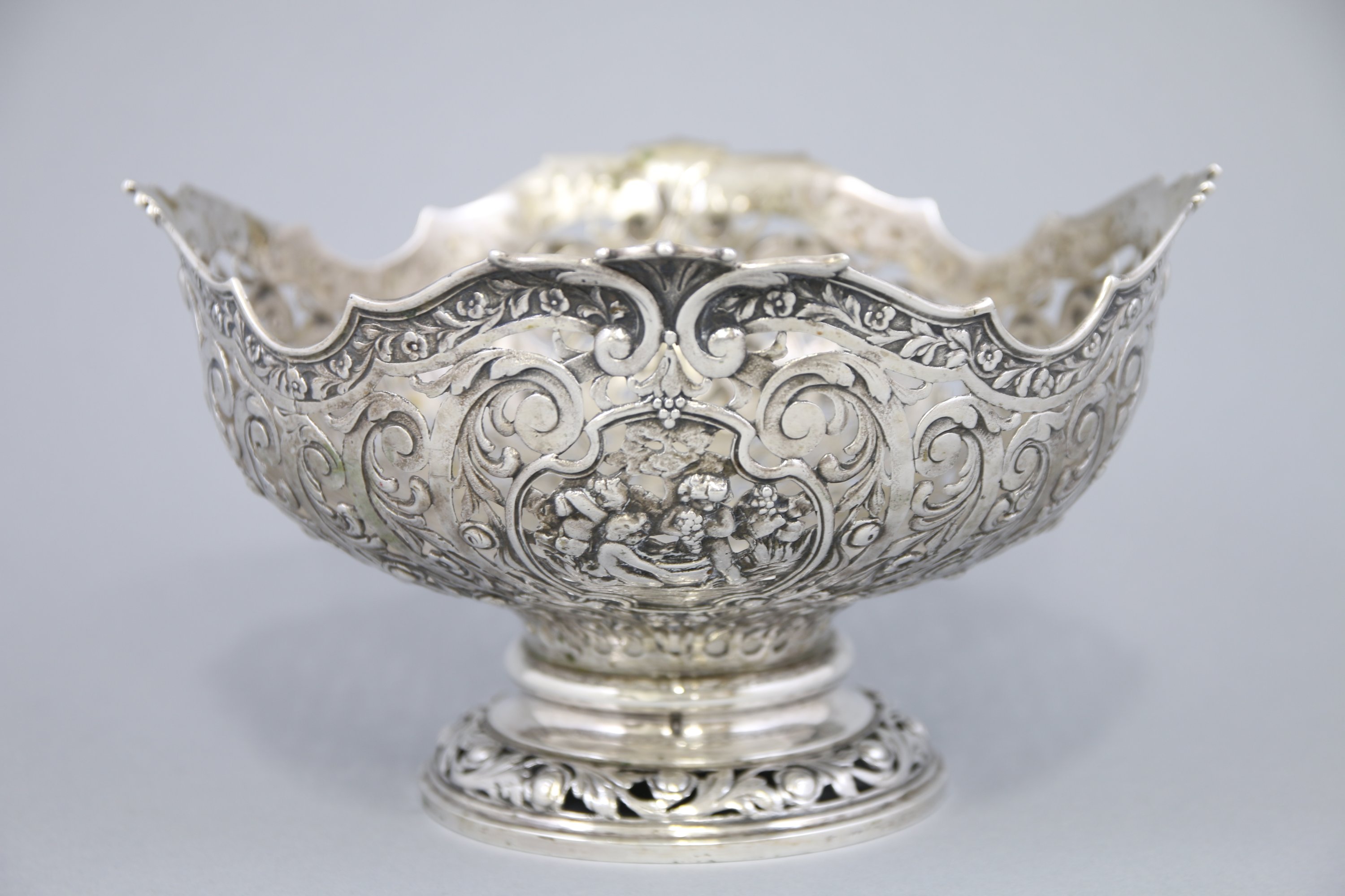 De forme mouvementée, elle présente des motifs de coquille enserrés dans des frises végétales surmontant des enroulements et feuilles d'acanthe.