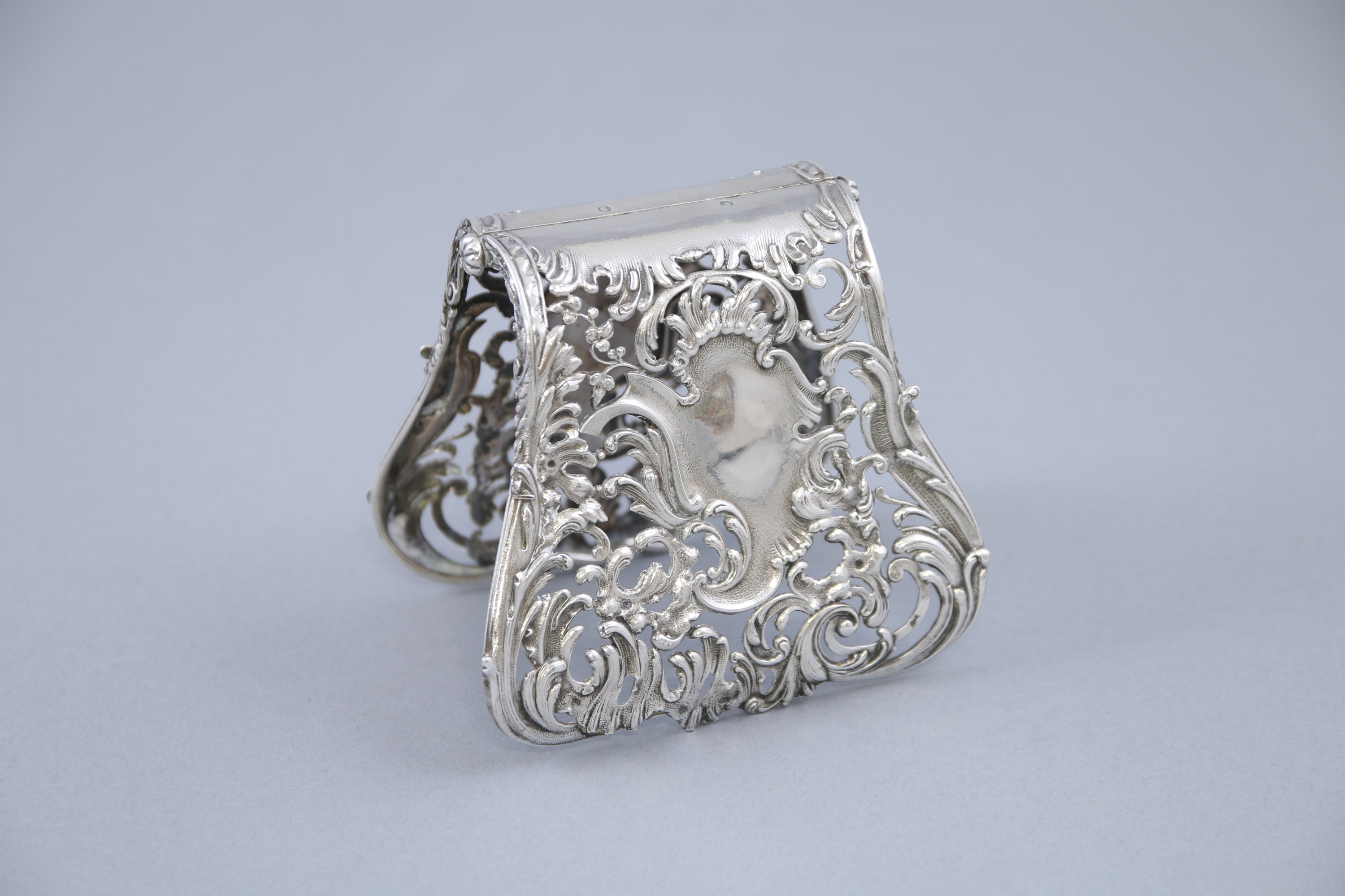 A décor ajouré de rinceaux, de feuilles d'acanthe et de cartouches.
