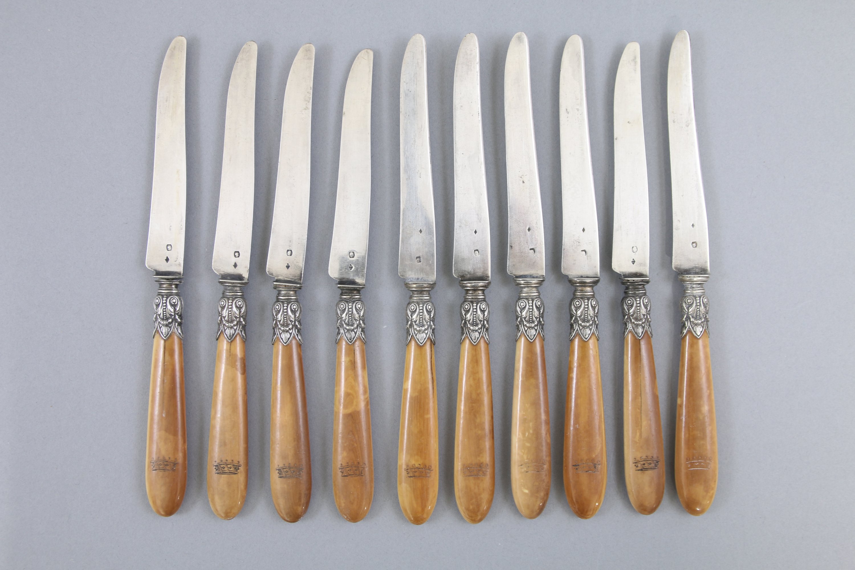 Lame argent et manche en bois à décor gravé d'une couronne vicomtale.