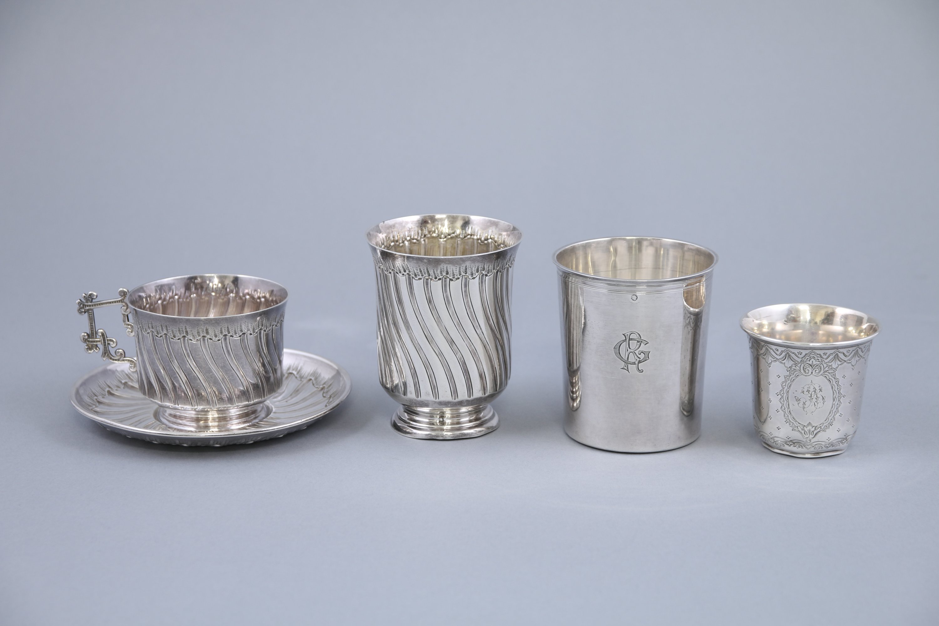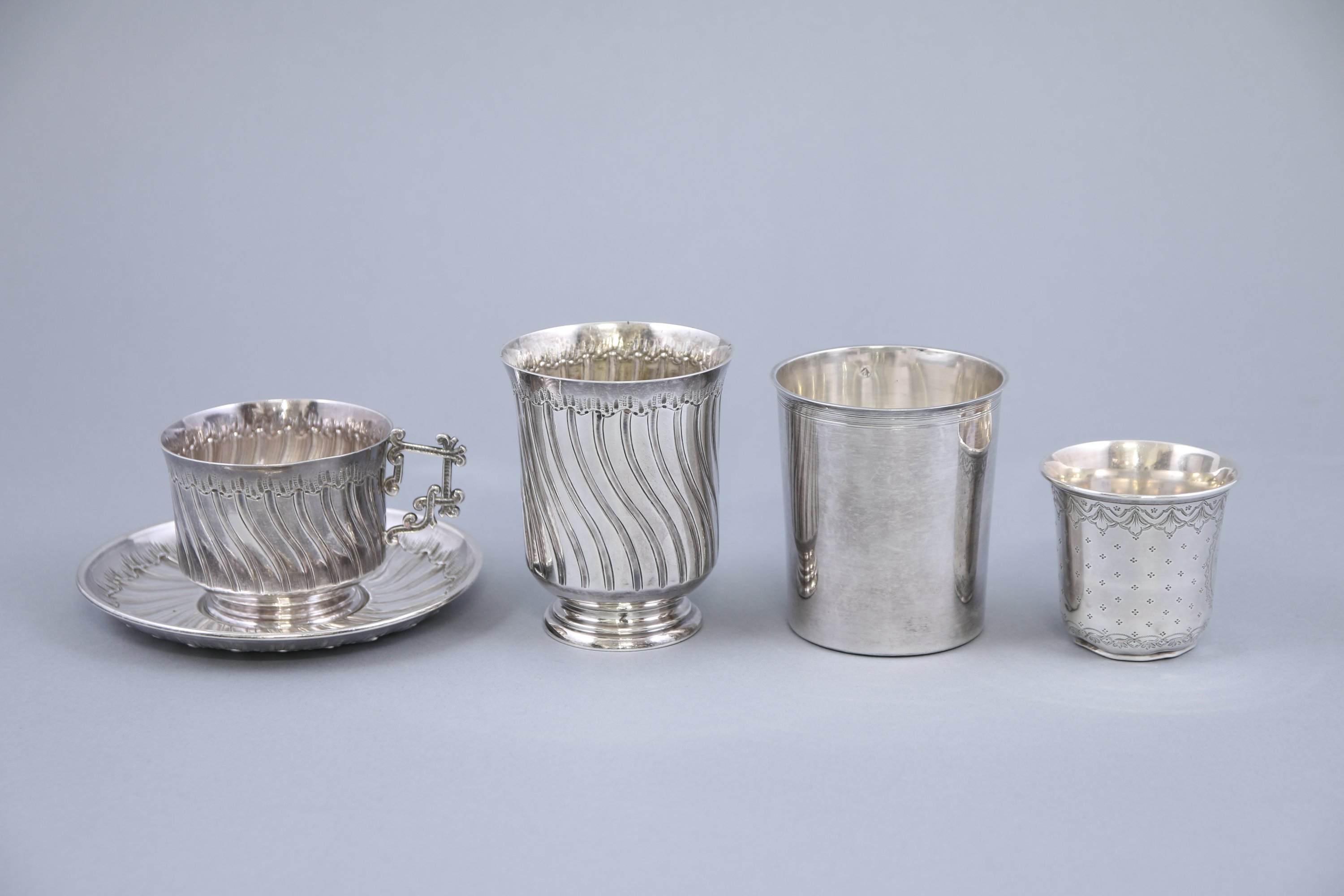 Comprenant deux timbales, un curon et une tasse et sa soucoupe