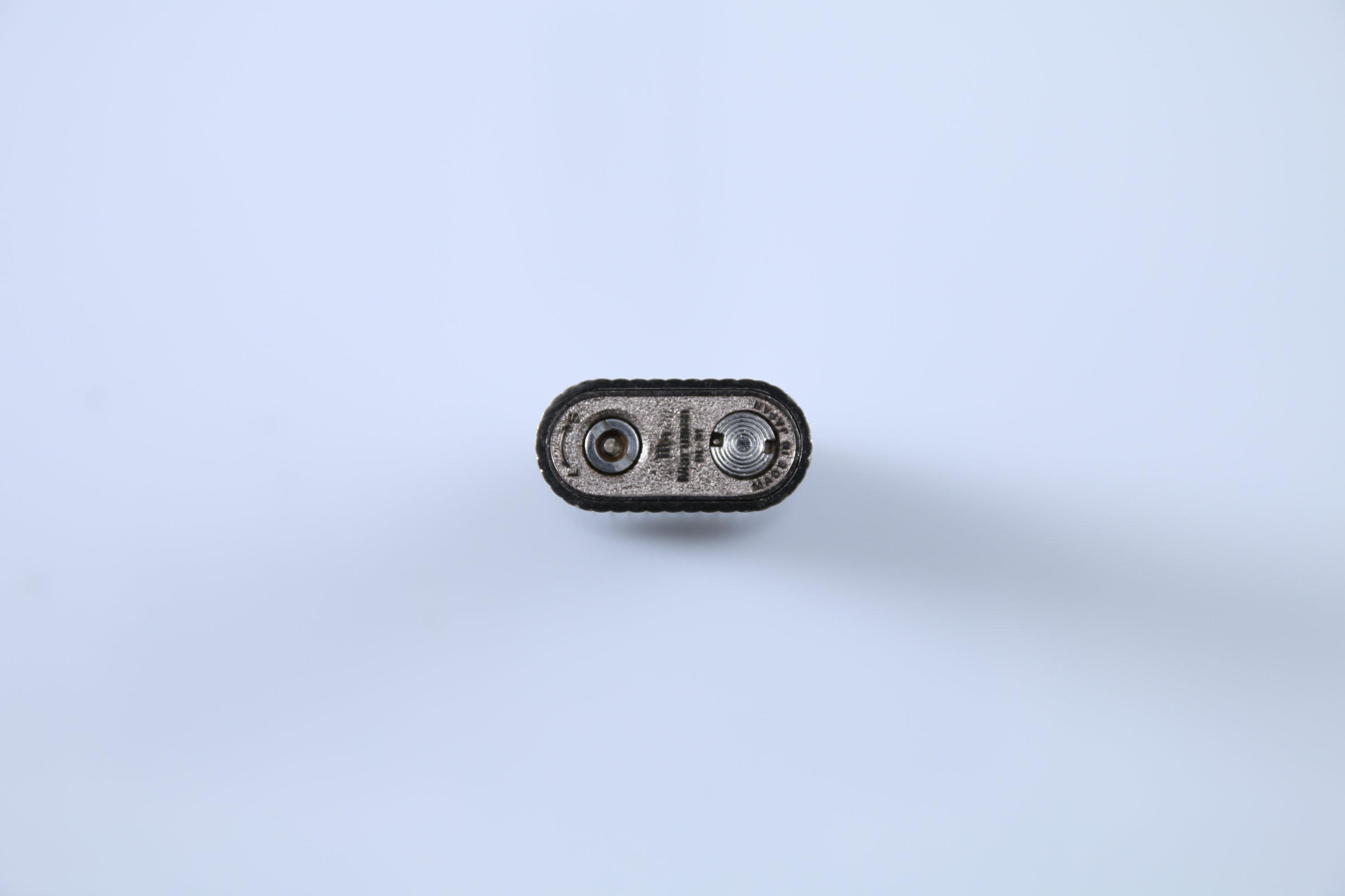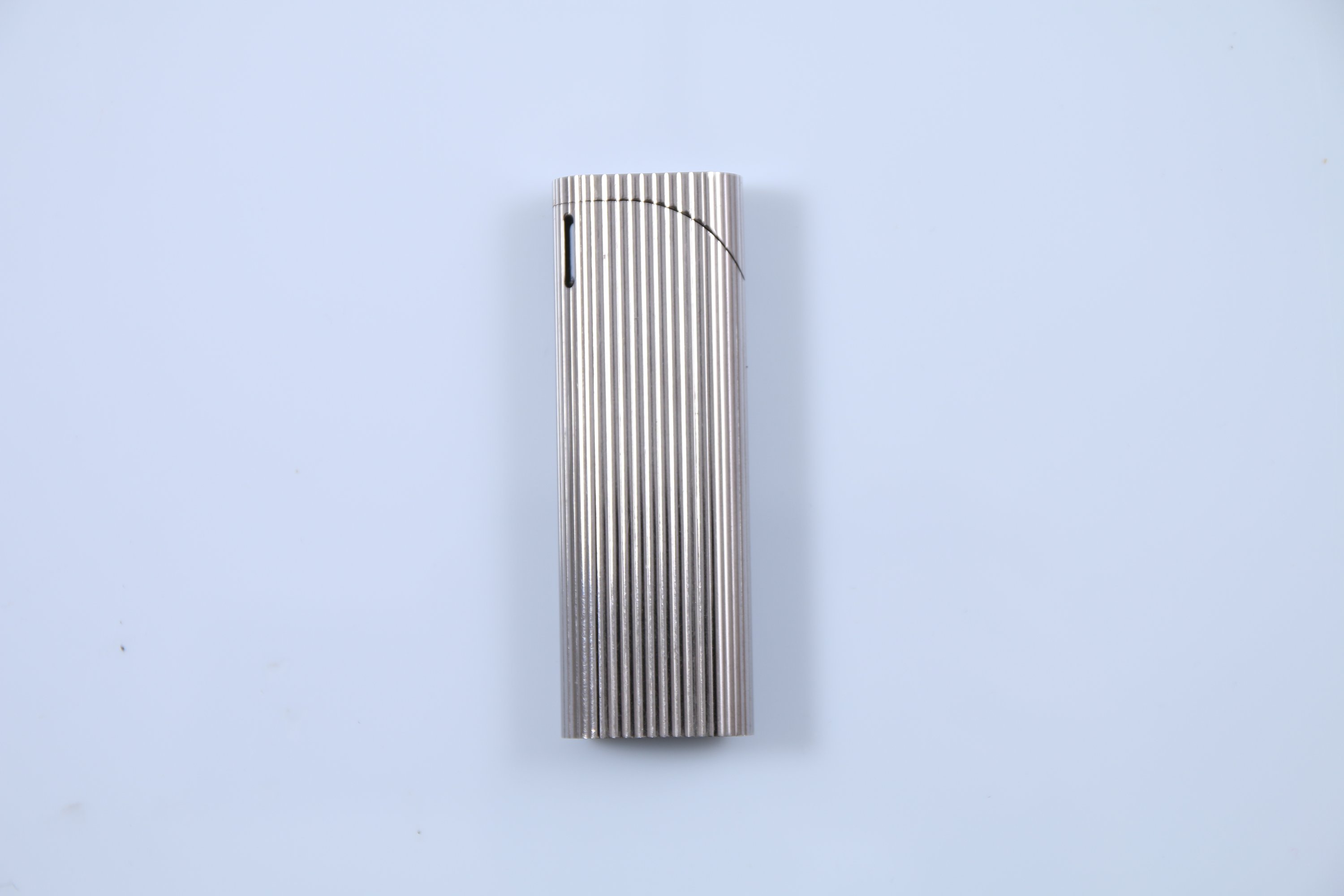 Joint: Maruman. Briquet en métal nickelé à décor de cannelures. Haut. 7 cm.