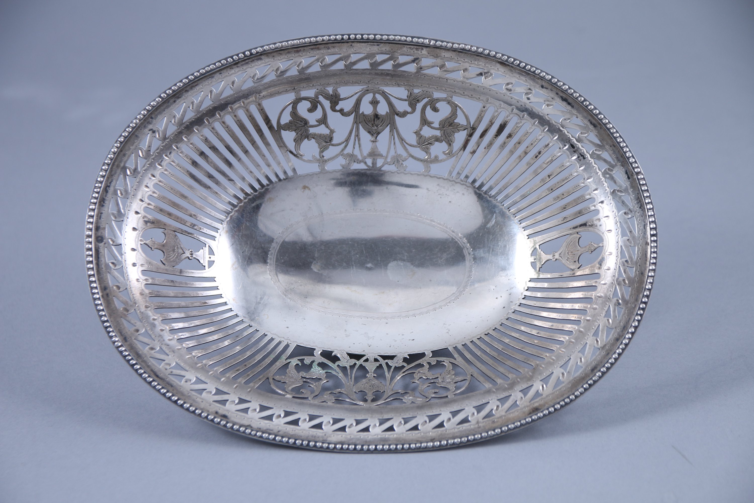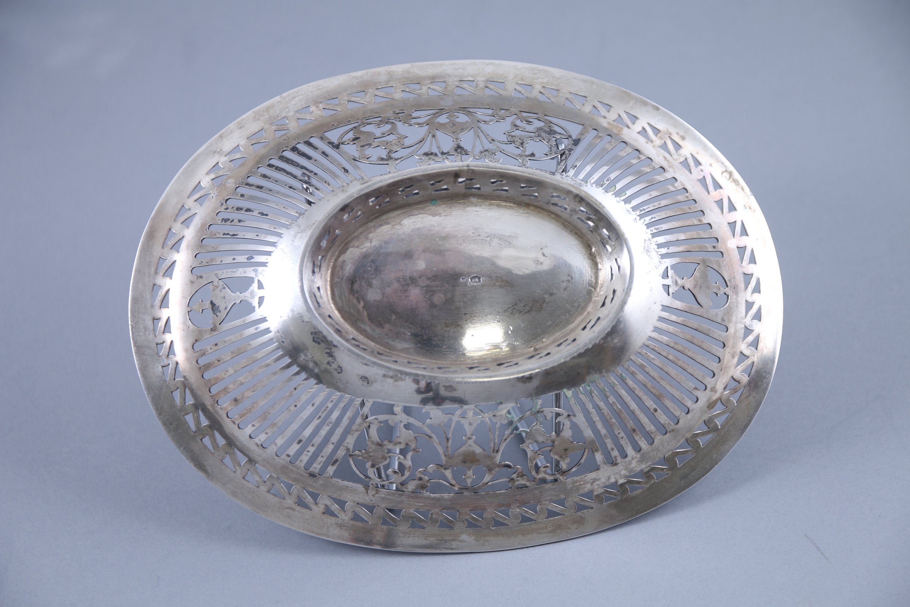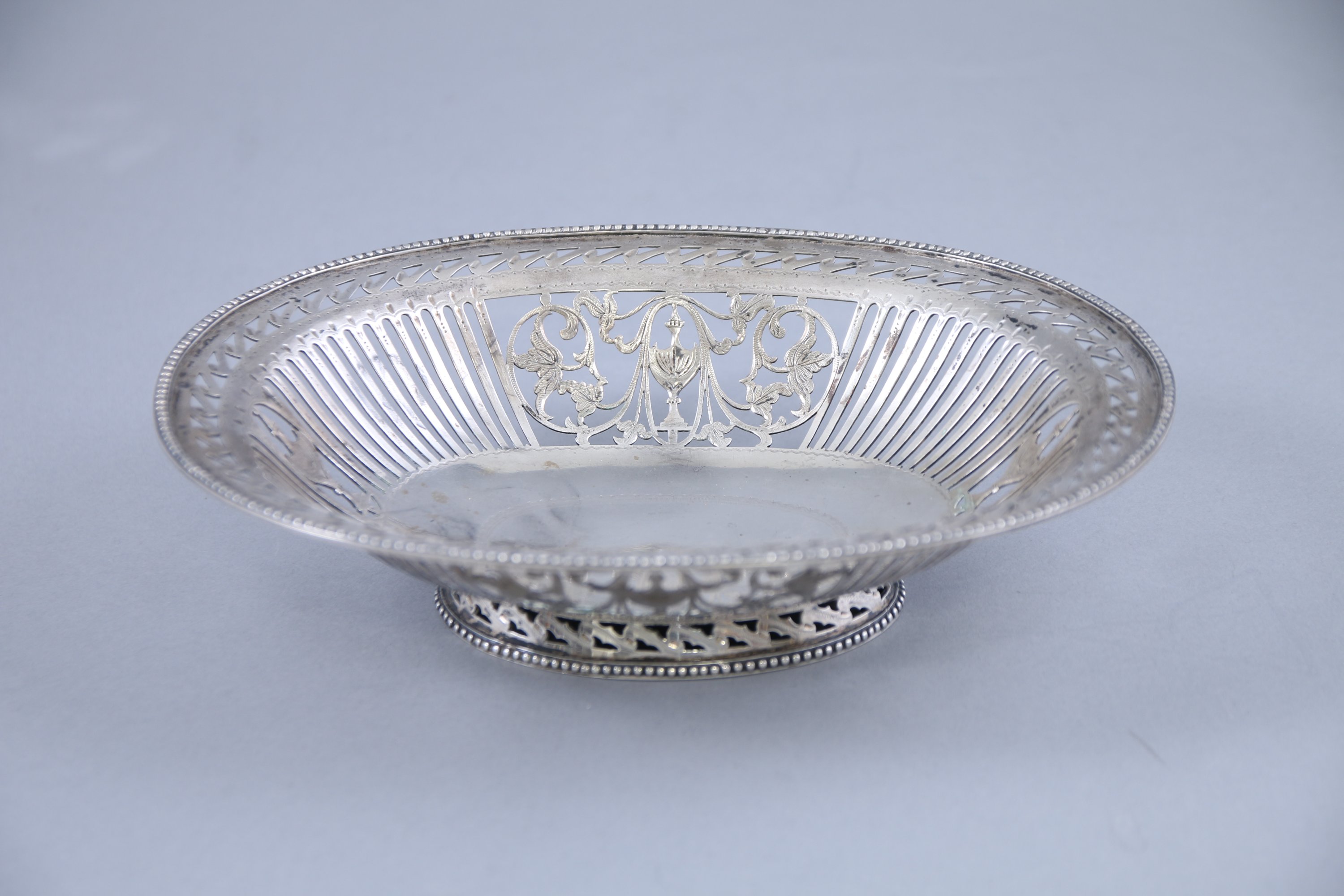 La lèvre soulignée d'un frise de perles et la panse à décor ajouré de vases dans un entourage de rinceaux. Le pied à motif de feuilles et un rang de perles.