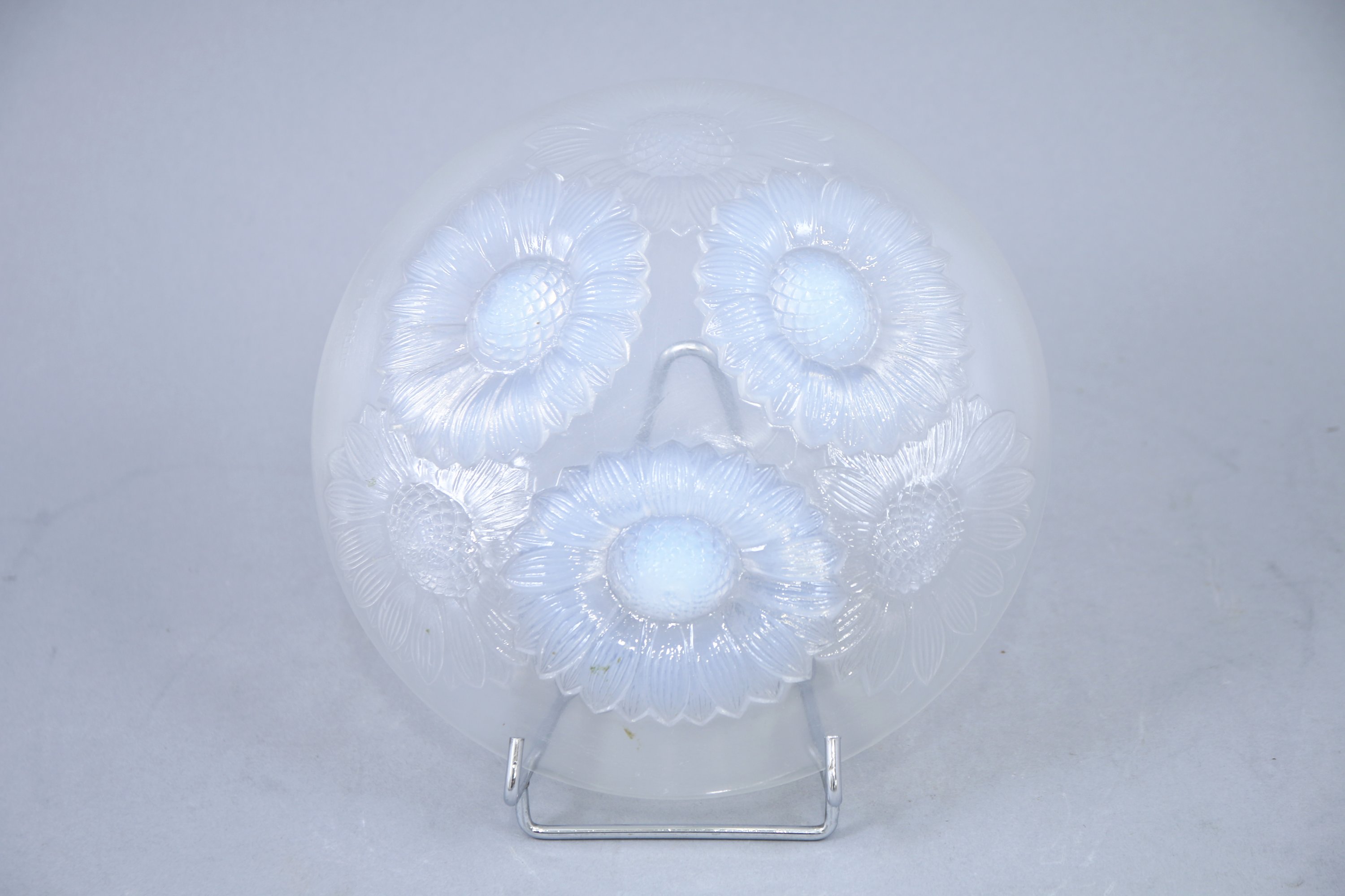 Verre moulé-pressé et opalescent.