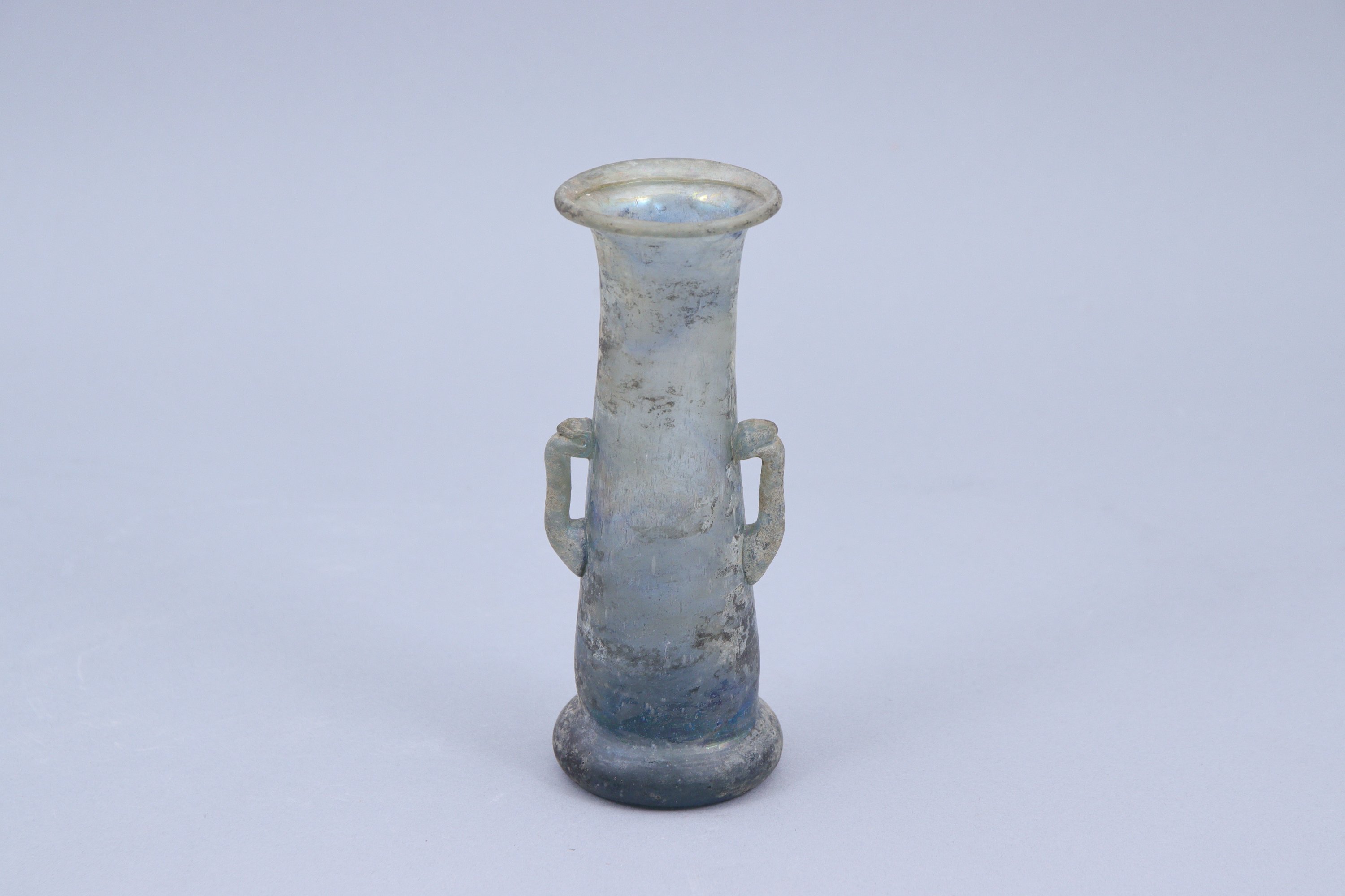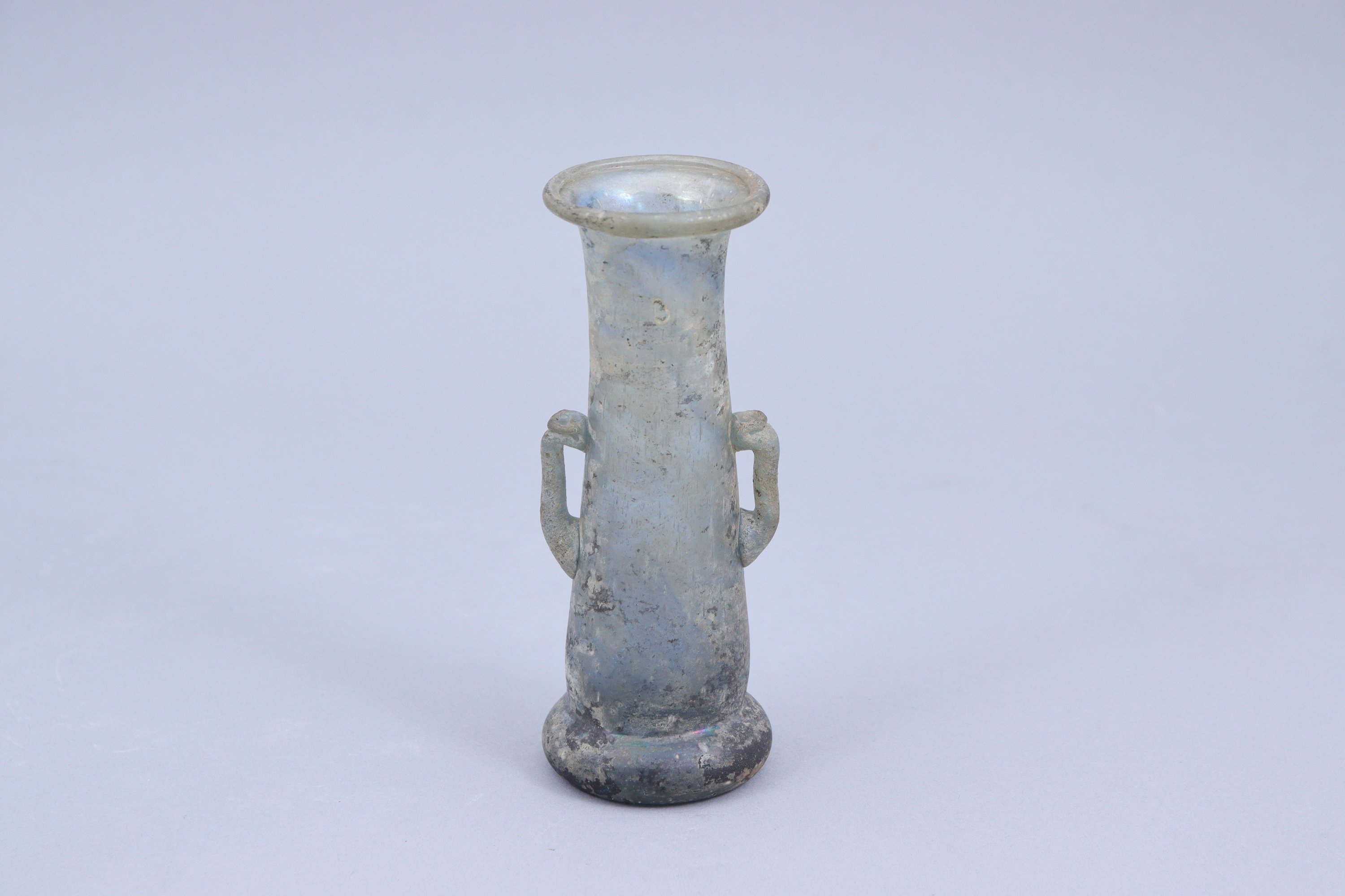 Verre de forme tubulaire à deux petites anses.