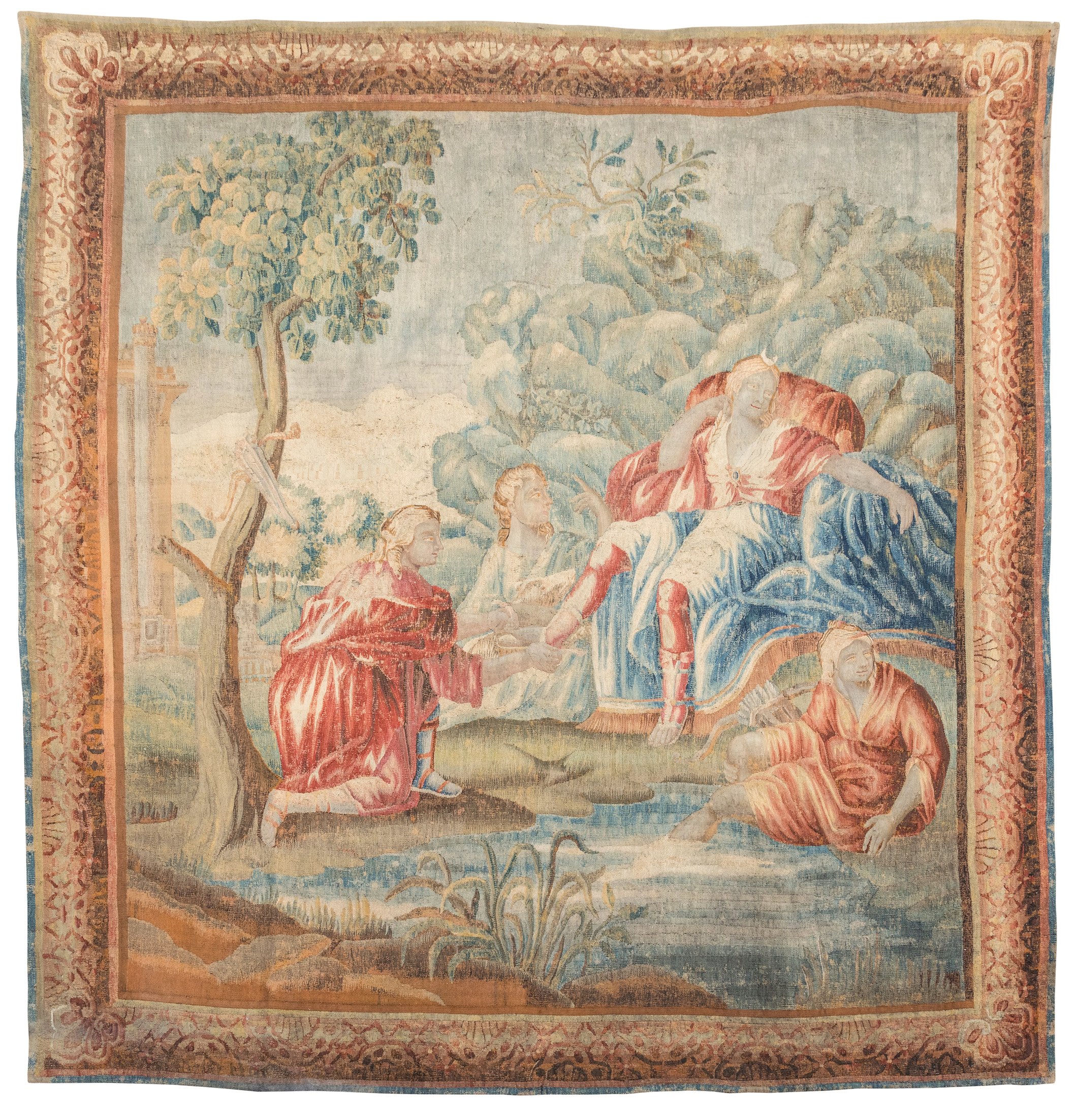 Tapisserie avec sa bordure d'un cadre figuré.