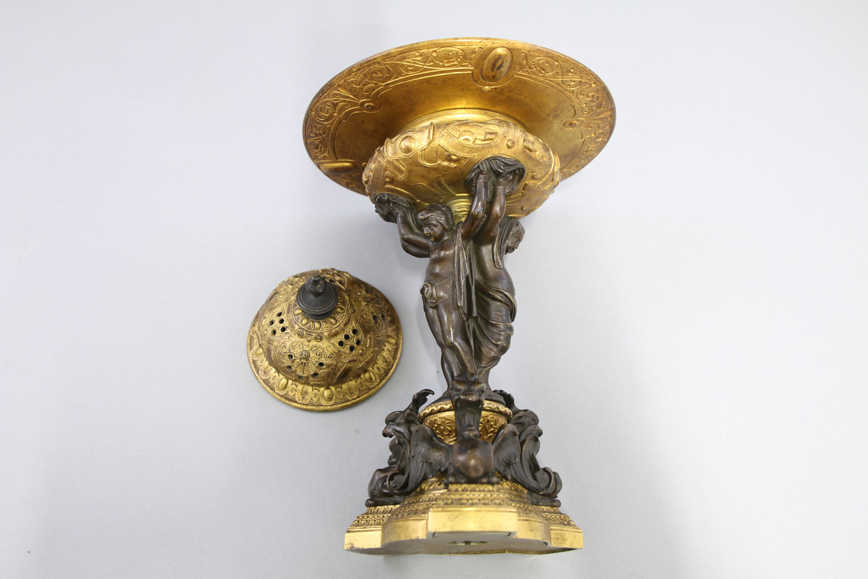 Bronze patiné et doré.