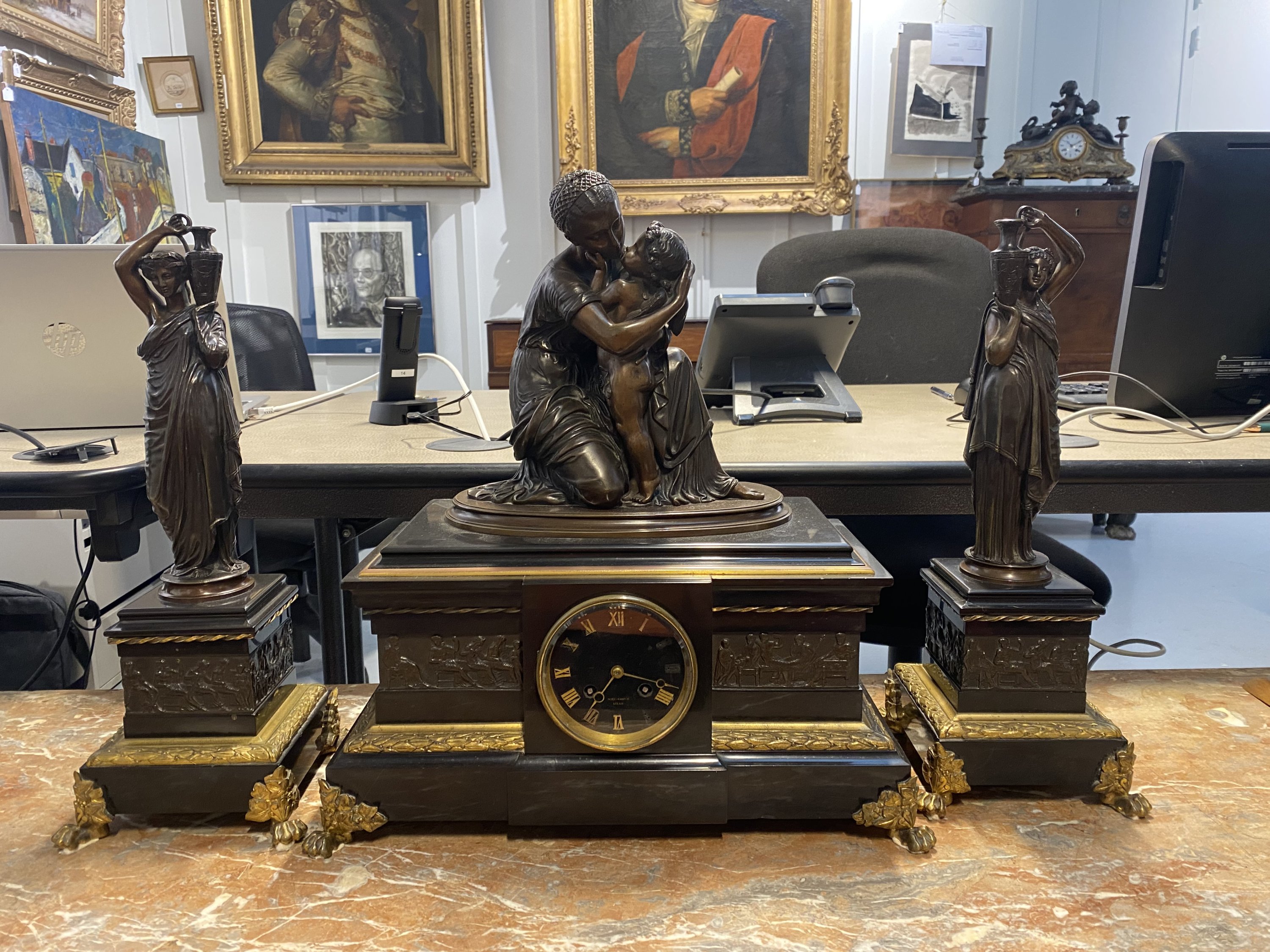 Garniture de cheminée à "L'Amour maternel"