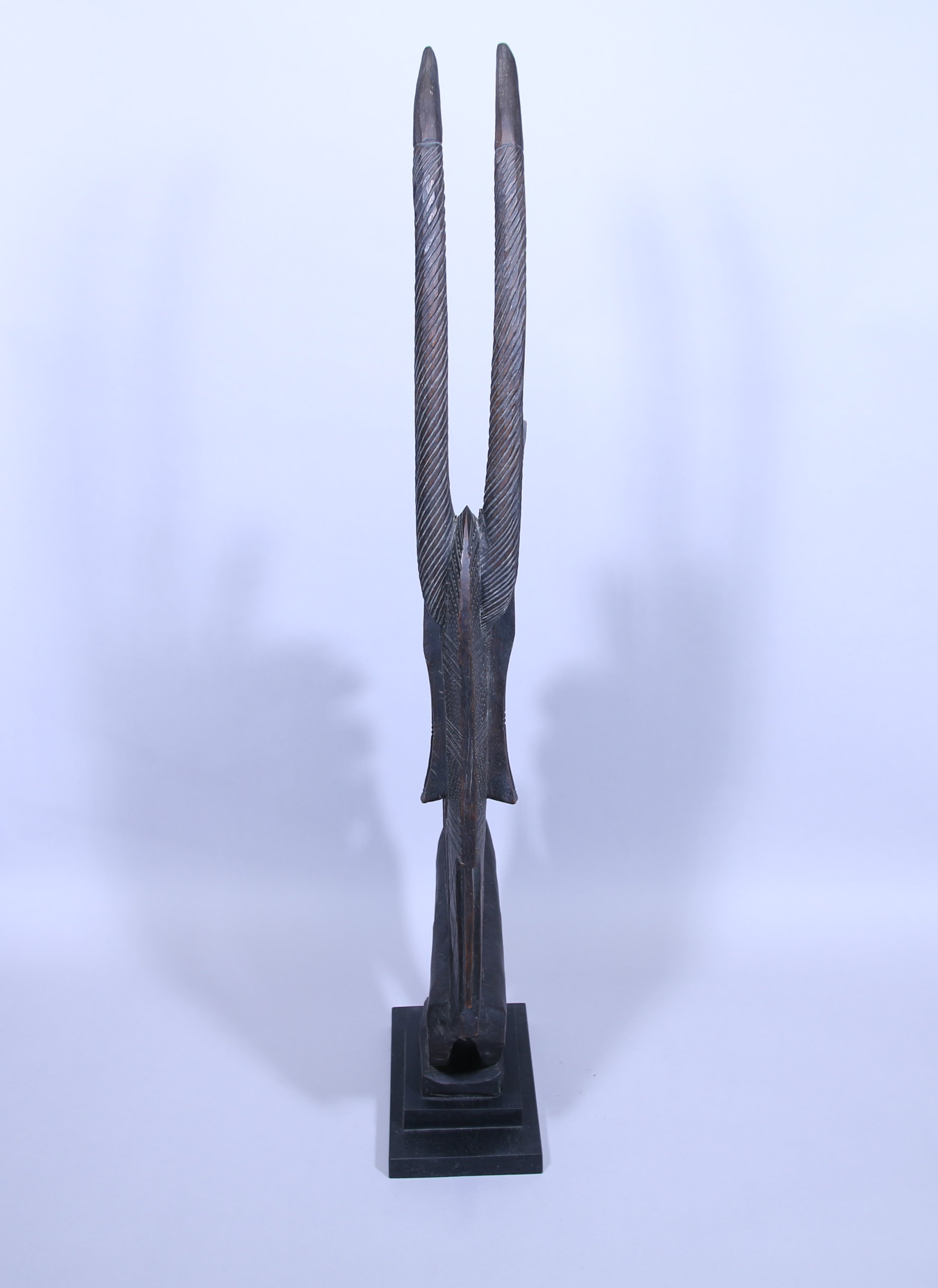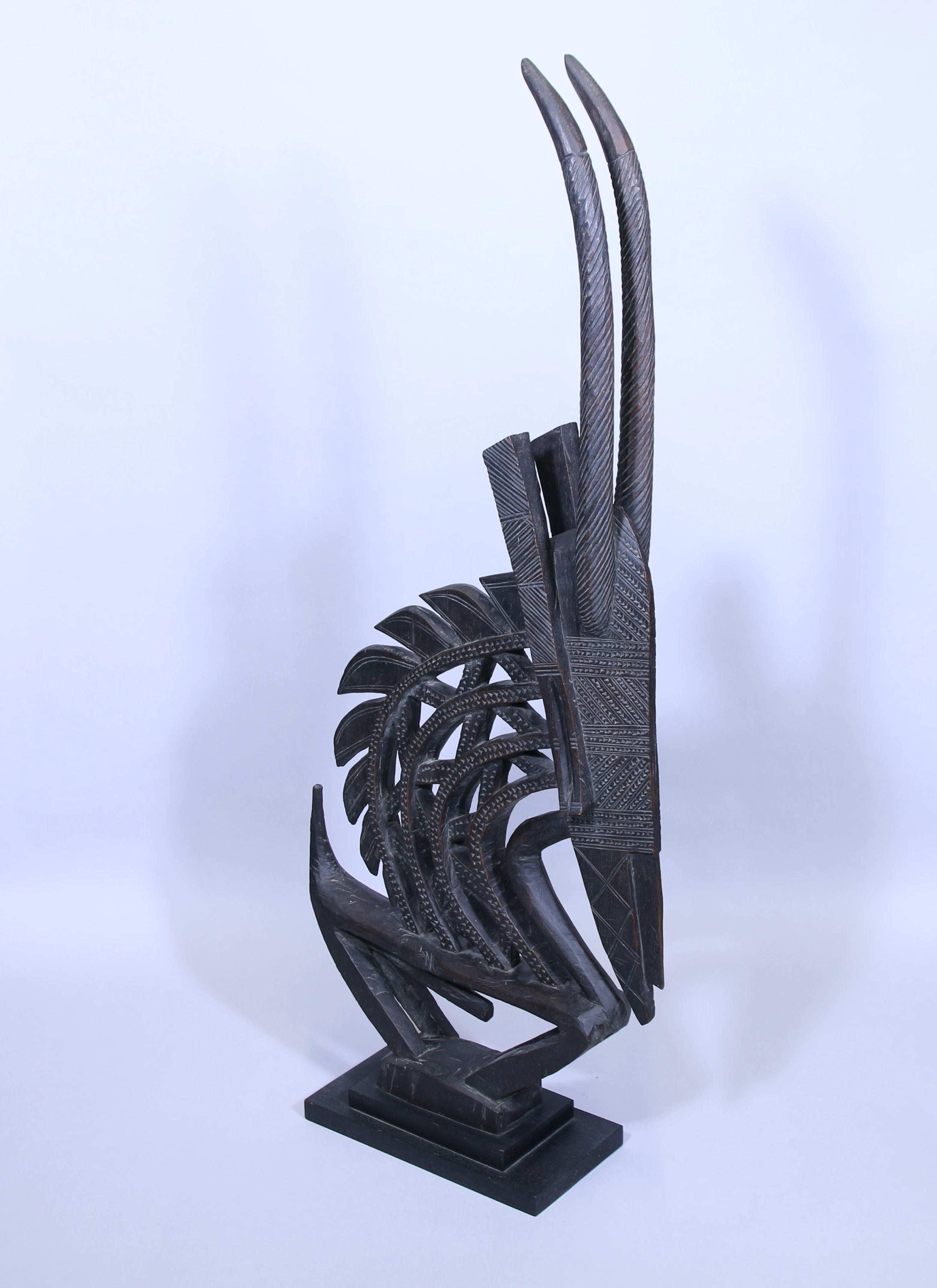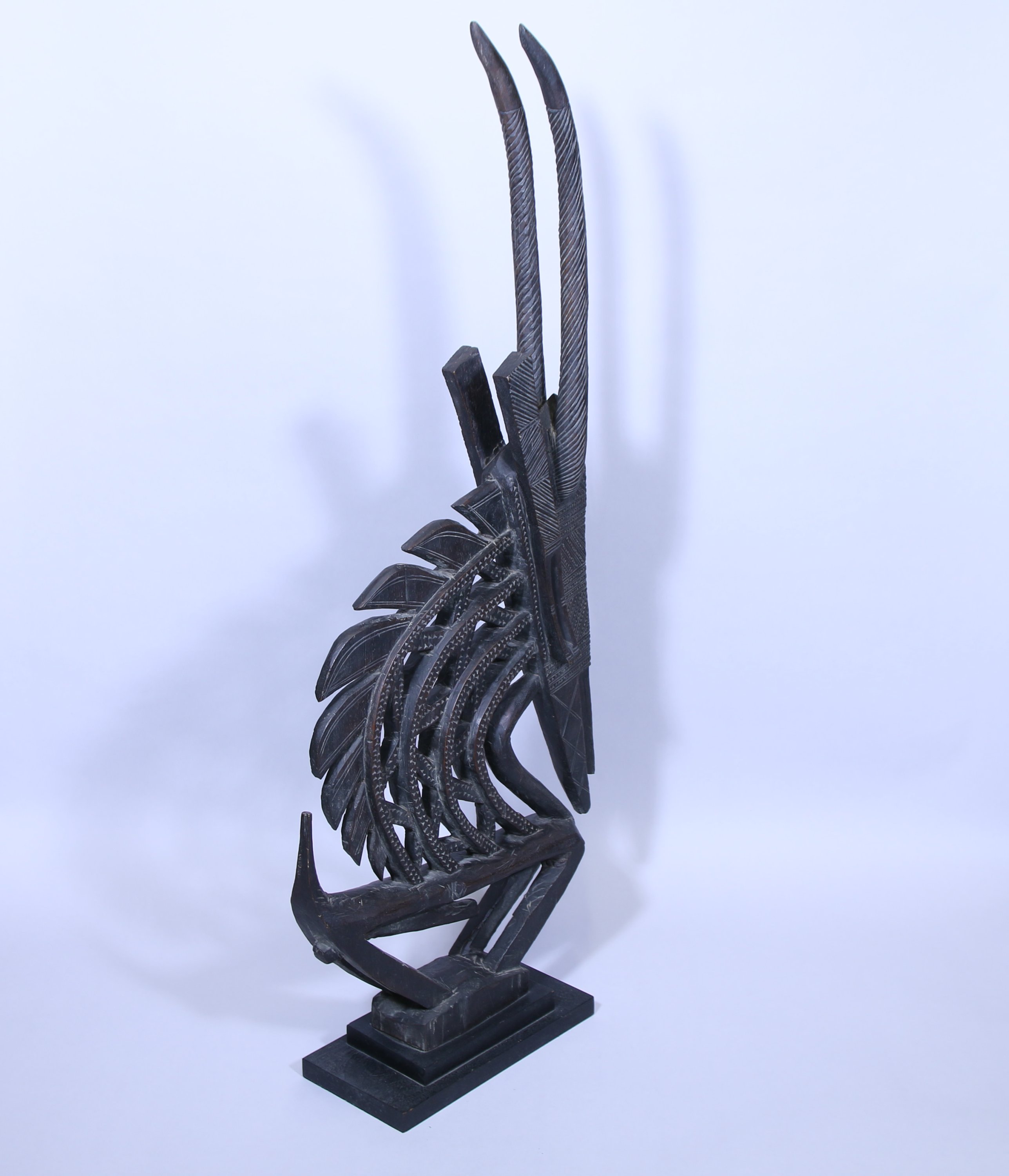 Masque cimier zoomorphe «Tyi Wara » représentant sous une forme stylisée une antilope mâle daje, à cornes verticales torsadées