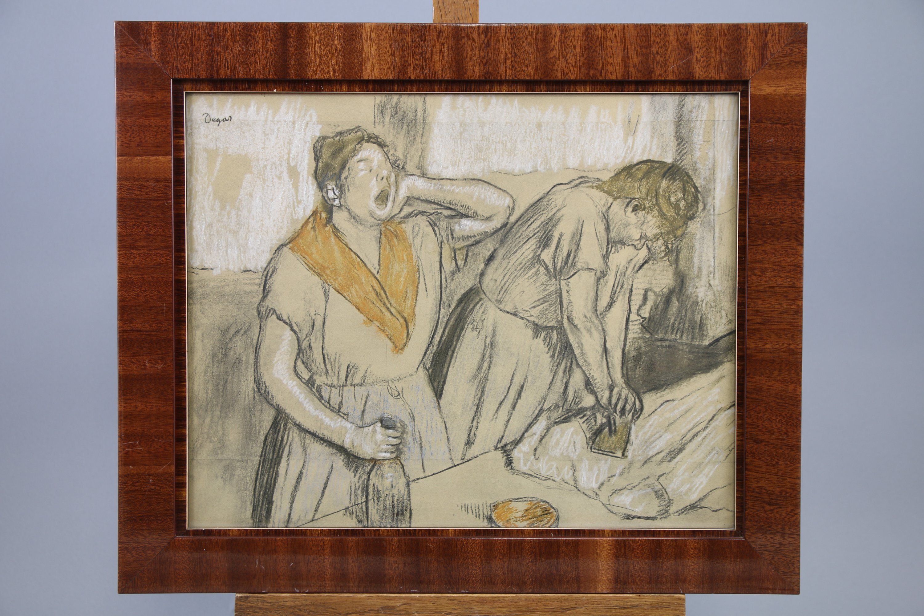 Joint: d'après Edgar Degas (Français, 1834-1917), Les repasseuses, entre 1884-86, Lithographie réhaussée, Haut. 31 Larg. 39 cm. L'oeuvre originale est conservée au musée de l'Orangerie, Paris (n° RF1985).