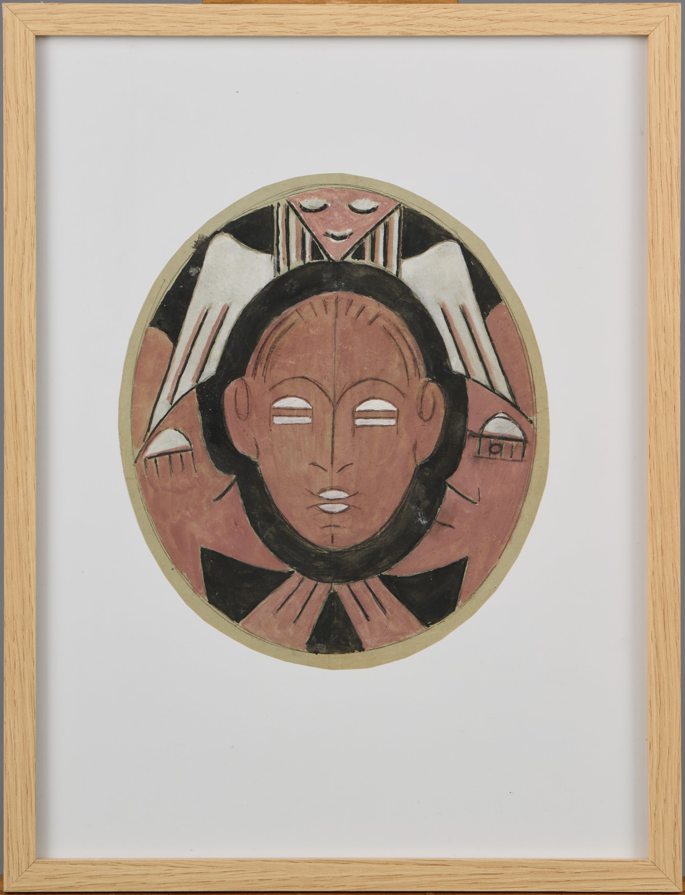 Crayon, gouache et encre ovale.
