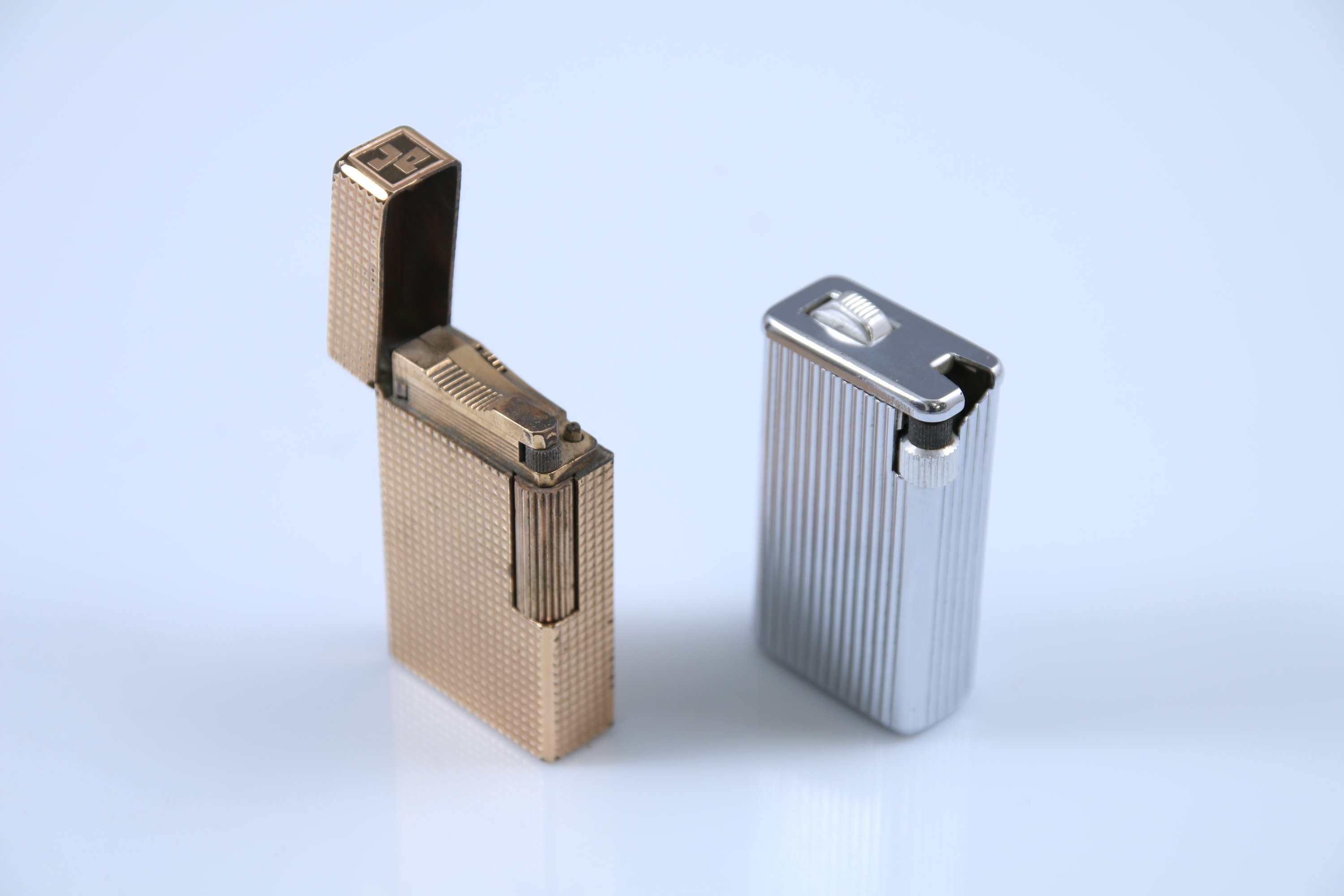 Joint: Hamidor. Briquet en métal à décor de cannelures. Haut. 58 Larg. 32 Prof. 17 mm.