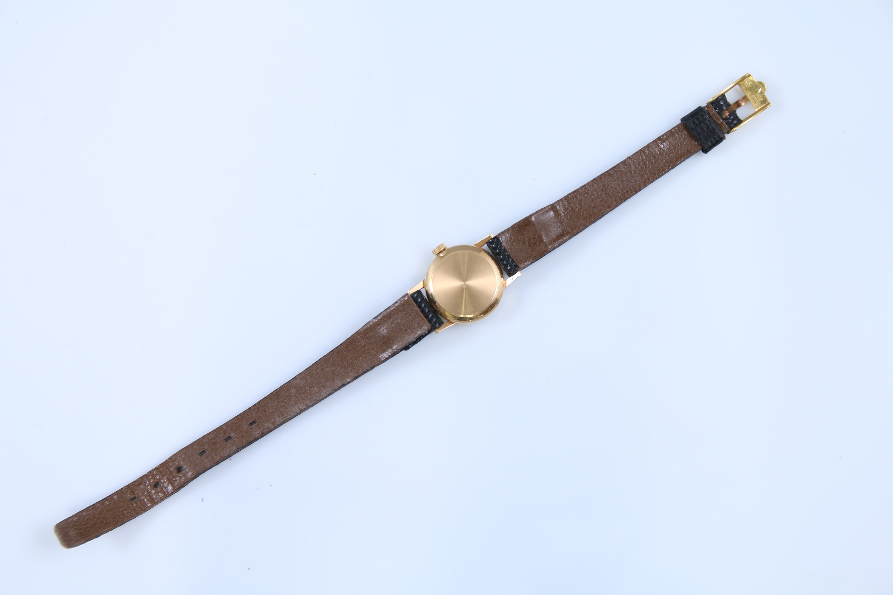 Mouvement mécanique. Bracelet cuir et boucle en métal doré.
