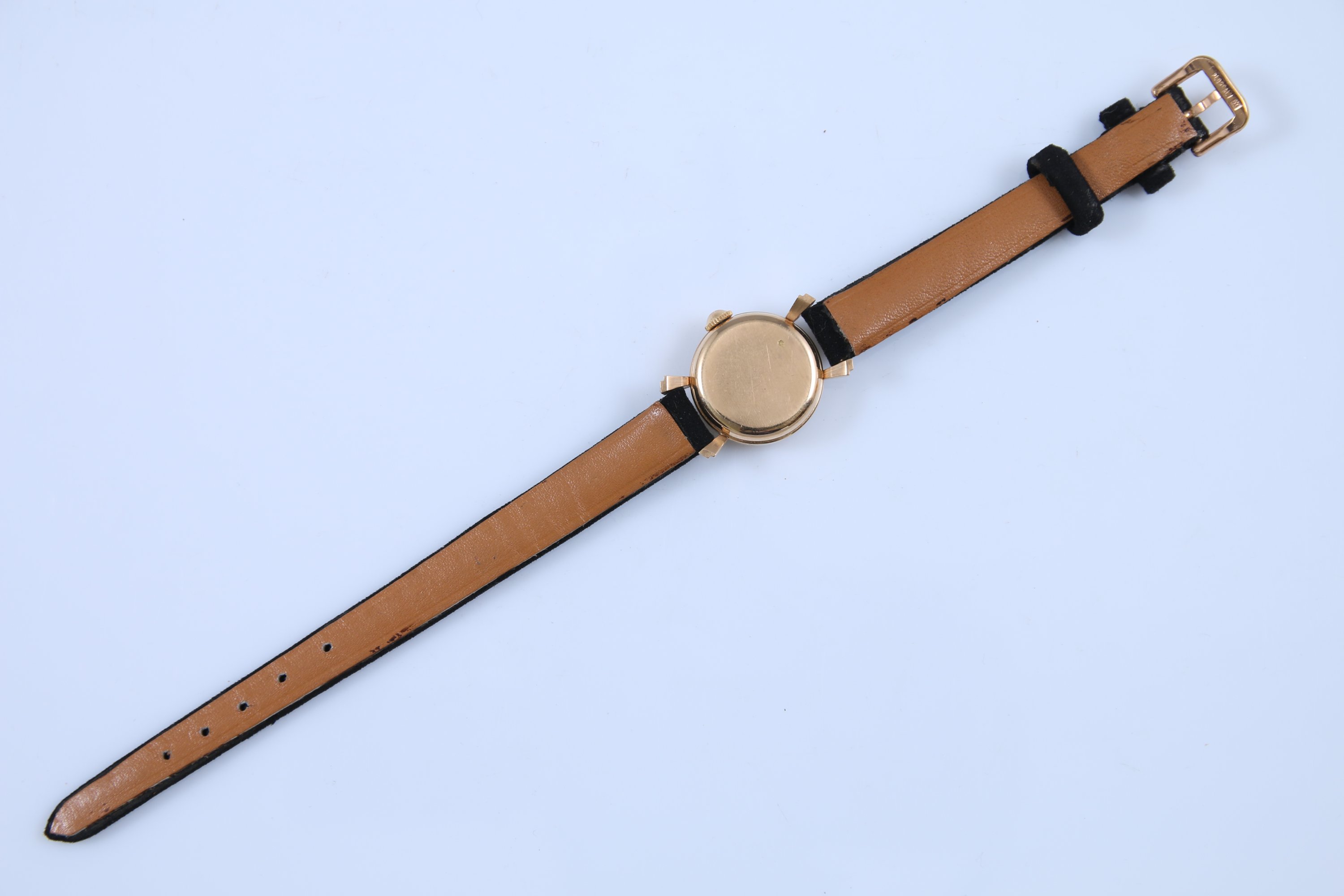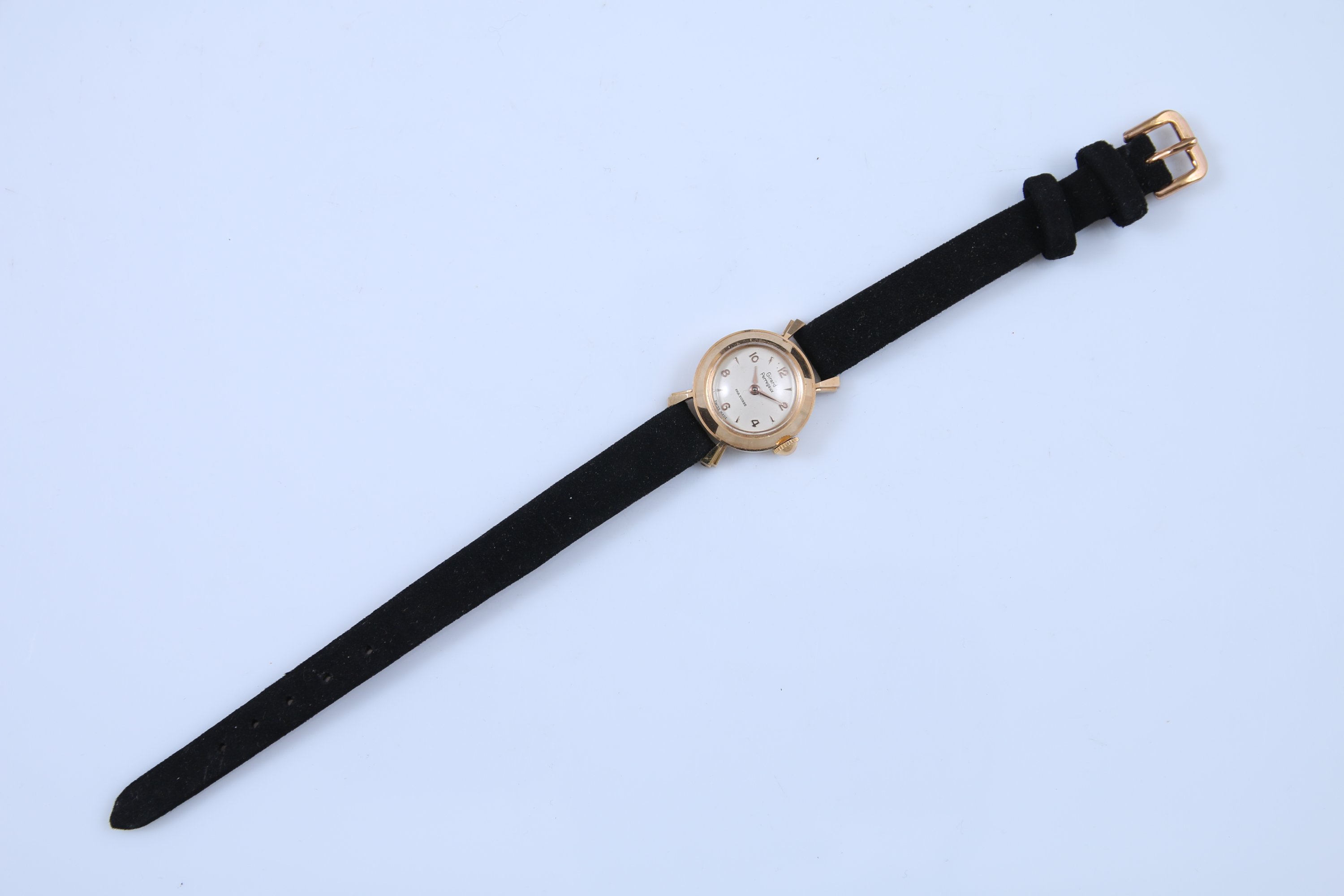 Le cadran fond champagne indiquant les heures en chiffres arabes et pointillets. Bracelet en cuir.