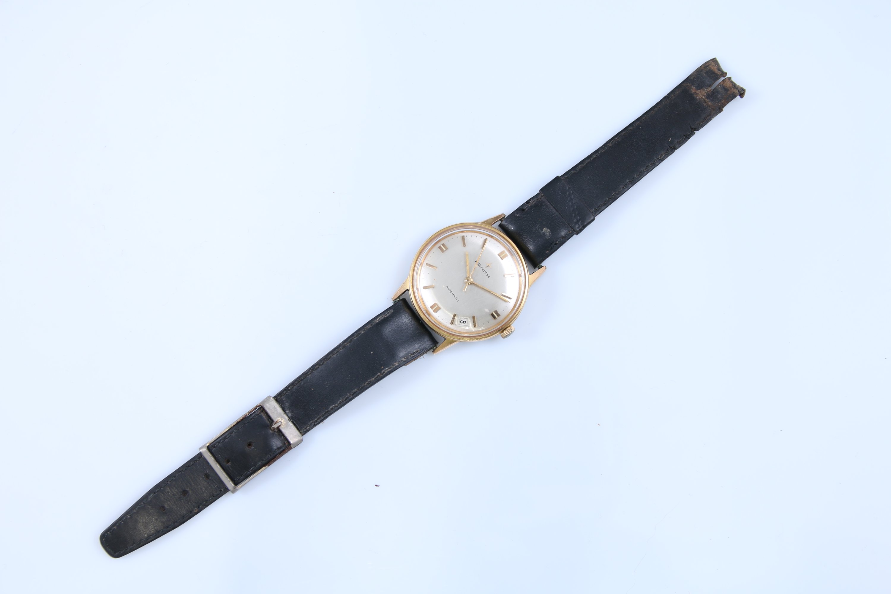 Le cadran argenté indiquant les heures par des bâtonnets. Guichet dateur à 4 heures. Fond numéroté "1090395". Mouvement automatique.