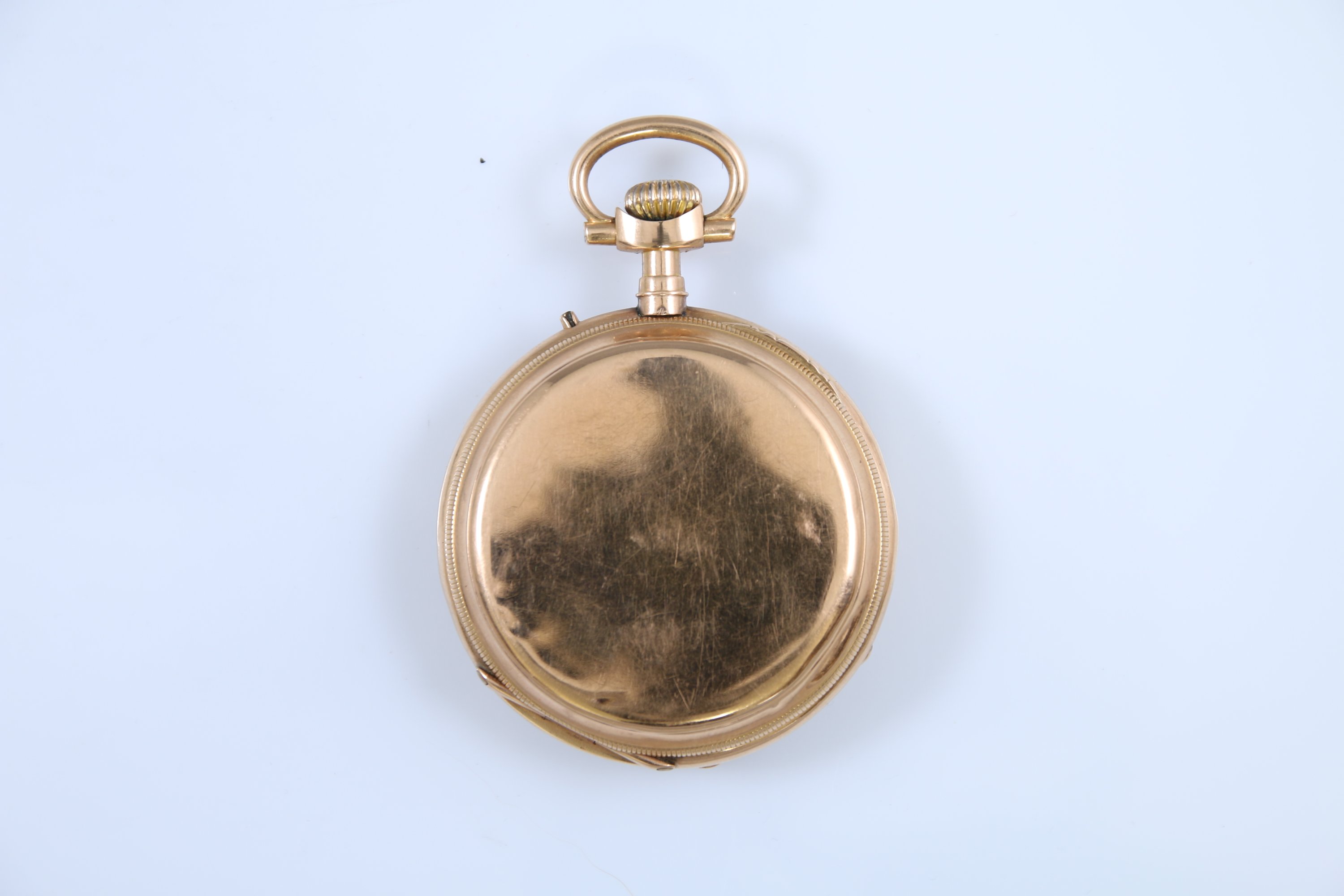 Cadran émaillé blanc indiquant les heures en chiffres romains et les minutes par un de fer. Petite trotteuse à six heures. Cache-poussière en or jaune 750 millièmes marqué "Remontoi / nickel / Ancre ligne droite / Spiral Breguet / 15 rubis / Genève" et numéroté "79 938".
