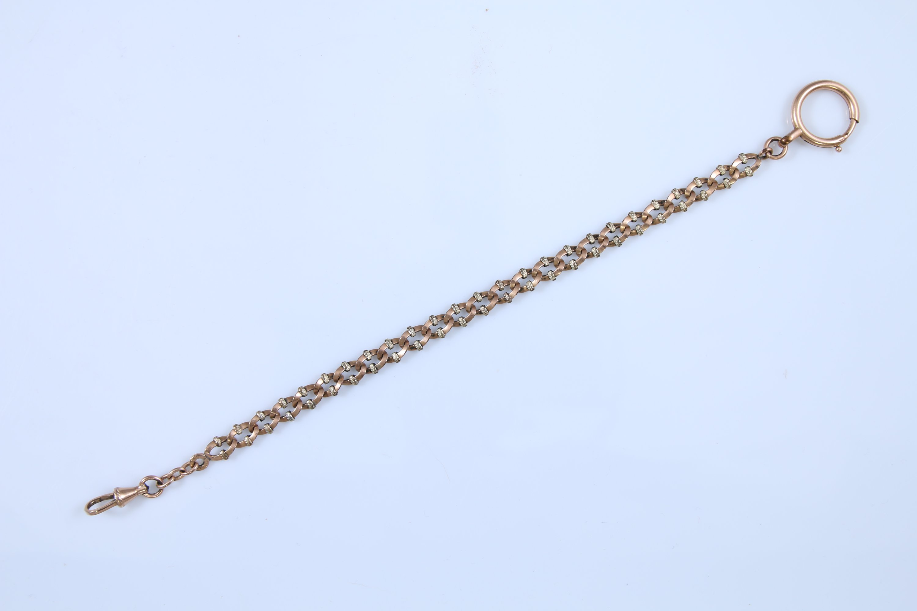 Joint: chaine giletière à mailles torsadées en métal doré. Poinçonnée "titre fixe". Long. 24,5 cm.