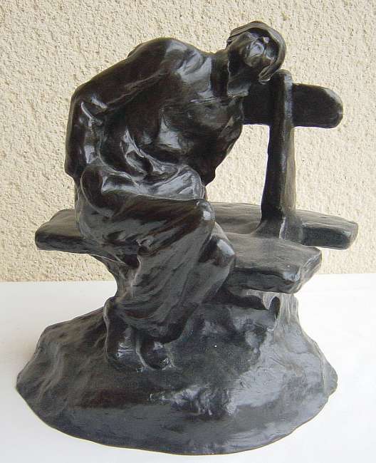 Homme se reposant sur un banc. Bronze à patine noire. Signé. Haut. 25, Long. 22 cm.