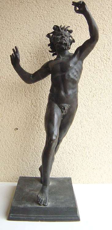 STATUETTE en régule représentant un faune. Haut. 77 cm.