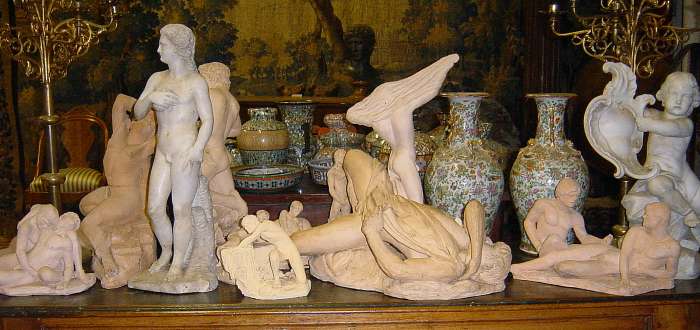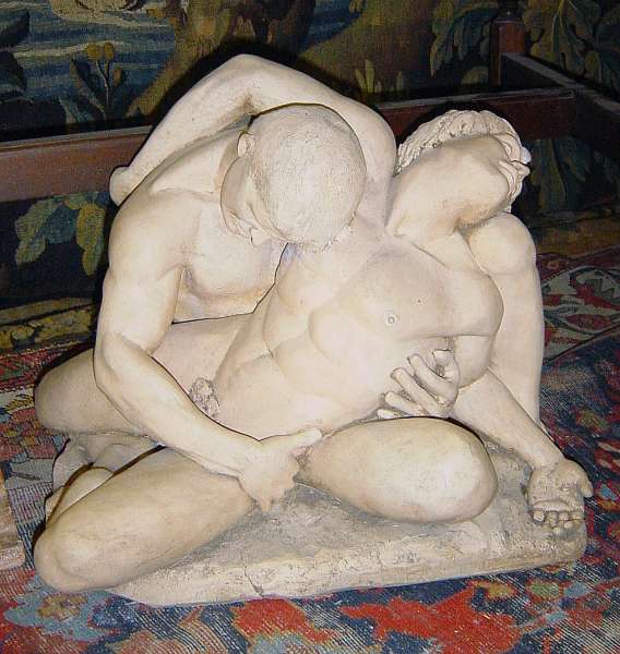 MARTI G. 12 groupes en terre-cuite représentant des hommes nus. Signés et datés. Division possible.