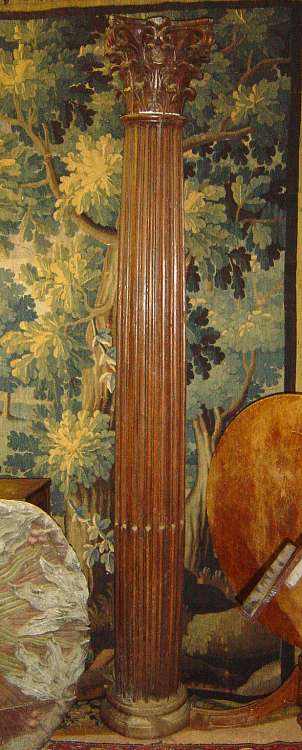 COLONNE corinthienne en bois naturel, cannelée et rudentée. Haut. 230...