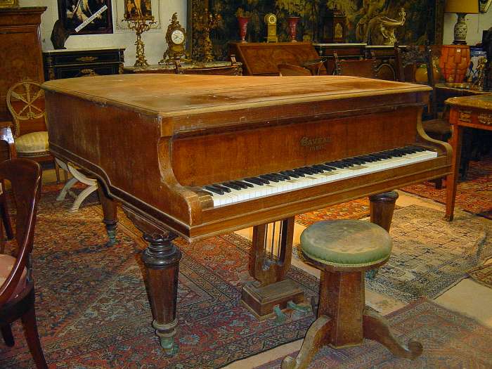 PIANO GAVEAU n° 56879 1/4 de queue en placage de palissandre (accdts). Clavier en ivoire et ébène. Cadre métallique. 3 pieds tronconiques à pans sur roulettes. n° 56879. Haut. 100, Long. 165, Larg. 137 cm.