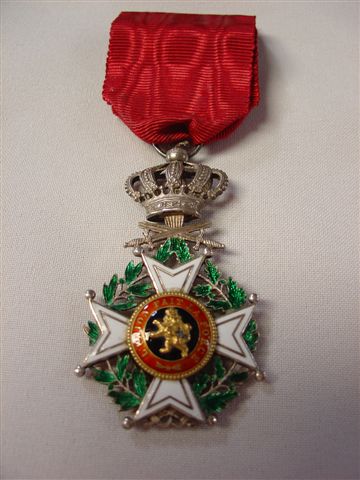 a) Belgique. Ordre de Léopold. Croix de chevalier avec épée. Argent, émail, ruban. Dans son écrin. T.B.