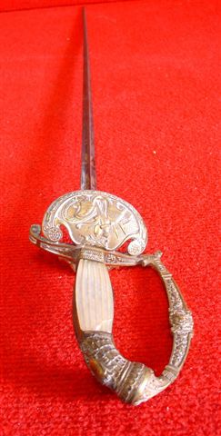 ÉPÉE d'Officier. Lame triangulaire gravée, dorée et bleuie au tiers. S.F.