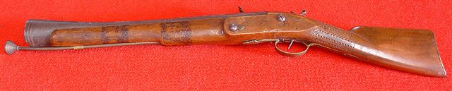 TROMBLON à silex. Garnitures en fer. Crosse en noyer. Vers...