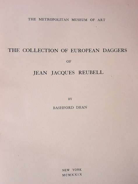 Livre: BASHFORD DEAN. The collection of european daggers of Jean Jacques Reubell. New-York, 1929. In-4 1/2 reliure, quelques défauts, 54 planches.