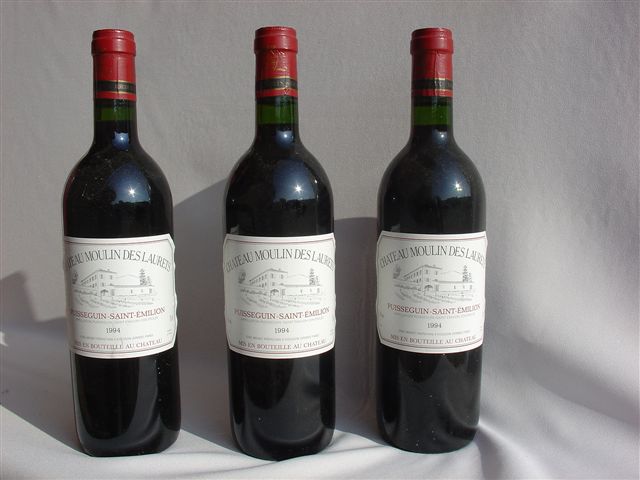 SAINT-ÉMILION Puisseguin. CHÂTEAU MOULIN DES LAURETS. 1994. 3 bouteilles (bon niveau).