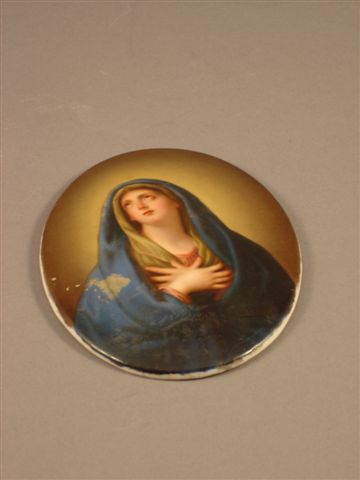 LA VIERGE. Plaque de porcelaine de forme ovale.
