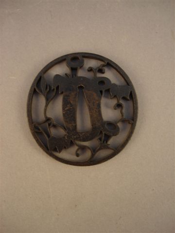 MARU-GATA en fer, décorée en sukasji-bori de fleurs et de feuillages.