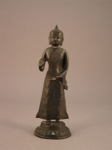 BOUDDHA: Tête de Bouddha et statue de Bouddha faisant le geste d'offrandes. Étain?