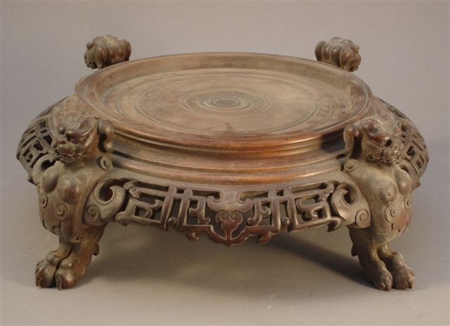 SOCLE en bois à quatre pieds en forme de têtes et pieds de chimères.