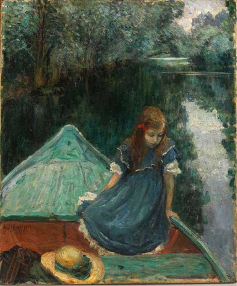 Nono, fillette de l'artiste, en barque sur la Marne, près de Lagny. Vers 1905-1907.