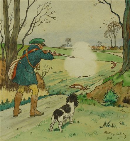 Aquarelle sur papier, signée en bas à droite "Harry Eliott" et datée "1916".