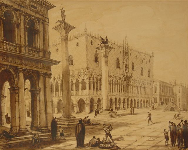 Sépia, signé en bas à gauche et daté 1928.