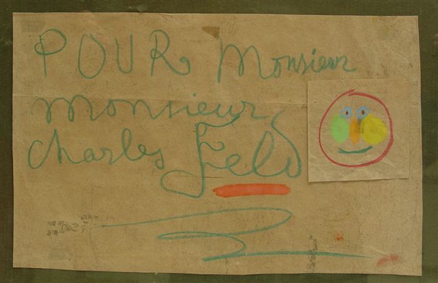 Composition sur papier kraft au pastel gras, envoi avec collage tête de personnage