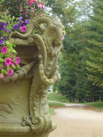 Les 4 vases représentent les 4 continents, avec les chasses spécifiques: cerf, lion, rhinocéros, éléphants...