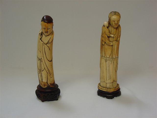 Couple, dont belle quanyin en deux parties. Ivoire.