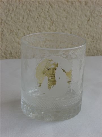 VERRE de forme cylindrique, gravée de pointes de diamants, de guirlandes de feuilles de chêne et de fleurs de lys, de l'écu de France couronné et fleurdelisé.