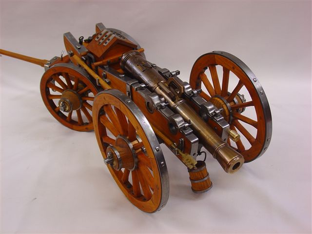MAQUETTE D'UNE PIÈCE D'ARTILLERIE GRIBEAUVAL PREMIER EMPIRE AVEC SON AVANT-TRAIN. Modèle 1765.